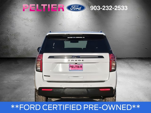 License Plate Front Mounting Package, Preferred Equipment Group 2Z7 (1st & 2nd Row Color-Keyed Carpeted Floor Mats, 2-Speed Active Electronic AutoTrac Transfer Case, Auto-Dimming Inside Rear-View Mirror, Black Tubular Assist Steps, Bose 9-Speaker Stereo Audio System Feature, Bright Front & Rear Door Sill Plates, Color-Keyed Carpeting Floor Covering, Driver & Front Outboard Passenger Airbags, Enhanced Driver Information Center, Floor Console w/Storage Area, Front High-Approach Angle Fascia, Hands-Free Rear Power Programmable Liftgate, Hill Descent Control, Infotainment Display, LED Daytime Running Lamps, Memory Settings for Driver, Red Horizontal-Mounted Recovery Hooks, Remote Start, SiriusXM Radio w/360L, Universal Home Remote, Wireless Charging, and Wrapped Steering Wheel), Ford Blue Advantage: Blue Certified Certified, 4WD, Black Leather, 10-Way Power Driver & Passenger Seat Adjusters, 2nd Row Manual Bucket Seats, 3.23 Rear Axle Ratio, 3rd row seats: split-bench, 4-Wheel Disc Brakes, 9 Speakers, ABS brakes, Air Conditioning, Alloy wheels, AM/FM radio: SiriusXM with 360L, Apple CarPlay/Android Auto, Auto High-beam Headlights, Auto-dimming Rear-View mirror, Automatic temperature control, Brake assist, Bumpers: body-color, Compass, Delay-off headlights, Driver door bin, Driver vanity mirror, Dual front impact airbags, Dual front side impact airbags, Dual-Pane Power Panoramic Sunroof, Electronic Stability Control, Emergency communication system: OnStar and Chevrolet connected services capable, Four wheel independent suspension, Front anti-roll bar, Front Bucket Seats, Front Center Armrest, Front dual zone A/C, Front High-Back Reclining Bucket Seats, Front reading lights, Fully automatic headlights, Garage door transmitter, Heated door mirrors, Heated Driver & Front Passenger Seats, Heated front seats, Illuminated entry, Leather-Appointed Seat Trim, Low tire pressure warning, Memory seat, Navigation System, Occupant sensing airbag, Outside temperature display, Overhead airbag, Overhead console, Panic alarm, Passenger door bin, Passenger vanity mirror, Power door mirrors, Power driver seat, Power Liftgate, Power passenger seat, Power steering, Power windows, Premium audio system: Chevrolet Infotainment 3 Premium, Premium Smooth Ride Suspension, Radio: Chevrolet Infotainment 3 Premium System, Rain sensing wipers, Rear air conditioning, Rear anti-roll bar, Rear reading lights, Rear seat center armrest, Rear window defroster, Rear window wiper, Remote keyless entry, Roof rack: rails only, Security system, Speed control, Speed-sensing steering, Split folding rear seat, Spoiler, Steering wheel mounted audio controls, Tachometer, Telescoping steering wheel, Tilt steering wheel, Traction control, Trip computer, Variably intermittent wipers, Voltmeter, and Wheels: 20" x 9" Machined Aluminum.