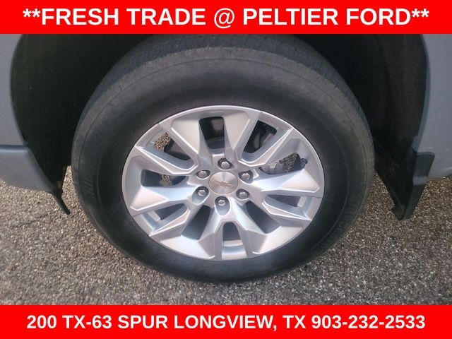 Custom Convenience Package (Electric Rear-Window Defogger, EZ Lift Power Lock & Release Tailgate, LED Cargo Area Lighting, Remote Vehicle Starter System, and Theft Deterrent System (Unauthorized Entry)), Custom Value Package, High Capacity Suspension Package, Preferred Equipment Group 1CX (10-Way Power Driver Seat w/Lumbar, 120-Volt Bed Mounted Power Outlet, 120-Volt Interior Power Outlet, 3.5" Monochromatic Display Driver Info Center, Bluetooth® For Phone, Chevrolet Connected Access Capable, Color-Keyed Carpeting Floor Covering, Deep-Tinted Glass, Dual Rear USB Ports (Charge Only), Electrical Steering Column Lock, Electronic Cruise Control, Front Frame-Mounted Black Recovery Hooks, Front Rubberized Vinyl Floor Mats, HD Rear Vision Camera, Manual Tilt Wheel Steering Column, OnStar & Chevrolet Connected Services Capable, Power Front Windows w/Driver Express Up/Down, Power Front Windows w/Passenger Express Down, Power Rear Windows w/Express Down, Rear 60/40 Folding Bench Seat (Folds Up), Rear Rubberized-Vinyl Floor Mats, Remote Keyless Entry, SiriusXM Radio, Standard Tailgate, and Wi-Fi Hot Spot Capable), Trailering Package (Hitch Guidance), Ford Blue Advantage: Blue Certified Certified, 8-Speed Automatic, 4WD, Black Cloth, 3.42 Rear Axle Ratio, 4-Wheel Disc Brakes, 40/20/40 Front Split-Bench Seat, 6 Speakers, 6-Speaker Audio System, ABS brakes, Air Conditioning, Alloy wheels, AM/FM radio: SiriusXM, Auto High-beam Headlights, Auto-Locking Rear Differential, Automatic Emergency Braking, Brake assist, Bumpers: body-color, Cloth Seat Trim, Compass, Delay-off headlights, Driver door bin, Driver vanity mirror, Dual front impact airbags, Dual front side impact airbags, Electronic Stability Control, Following Distance Indicator, Forward Collision Alert, Front anti-roll bar, Front Center Armrest w/Storage, Front License Plate Kit, Front Pedestrian Braking, Front reading lights, Front wheel independent suspension, Fully automatic headlights, Heated door mirrors, Illuminated entry, IntelliBeam Automatic High Beam On/Off, Lane Keep Assist w/Lane Departure Warning, Low tire pressure warning, Occupant sensing airbag, Outside temperature display, Overhead airbag, Overhead console, Panic alarm, Passenger door bin, Passenger vanity mirror, Power door mirrors, Power driver seat, Power steering, Power windows, Premium audio system: Chevrolet Infotainment 3, Radio data system, Radio: Chevrolet Infotainment 3 System, Rear reading lights, Rear step bumper, Rear Wheelhouse Liners, Rear window defroster, Remote keyless entry, Security system, Single Outlet Exhaust, Speed control, Speed-sensing steering, Split folding rear seat, Tachometer, Tilt steering wheel, Traction control, Trip computer, Variably intermittent wipers, Voltmeter, and Wheels: 20" x 9" Bright Silver Painted Aluminum.