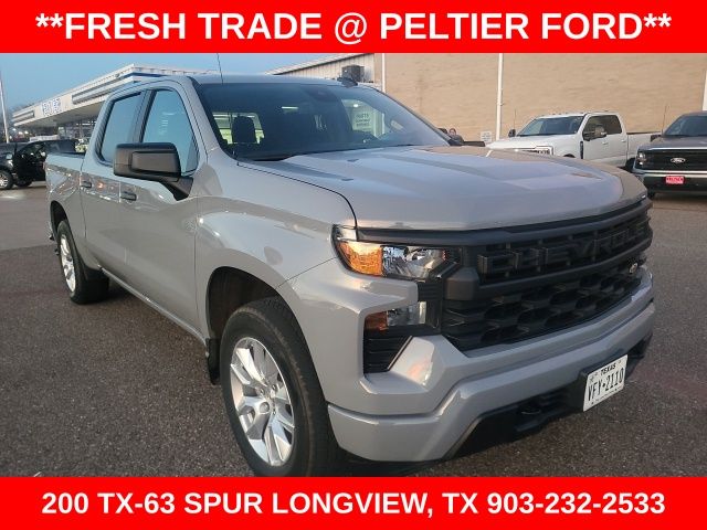 Clean CARFAX. CARFAX One-Owner. Slate Gray Metallic 2024 Chevrolet 2.7L I4 Turbocharged DOHC 16V LEV3-SULEV30 310hp 4D Crew Cab Silverado 1500 Custom 8-Speed Automatic 4WD