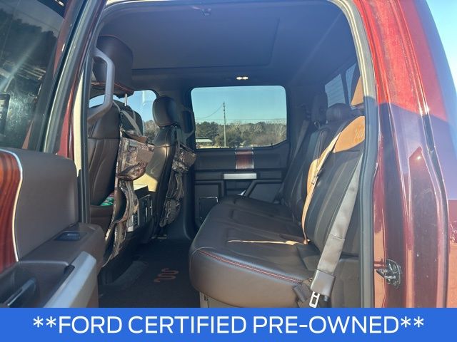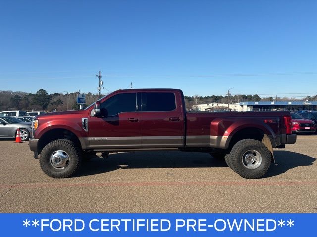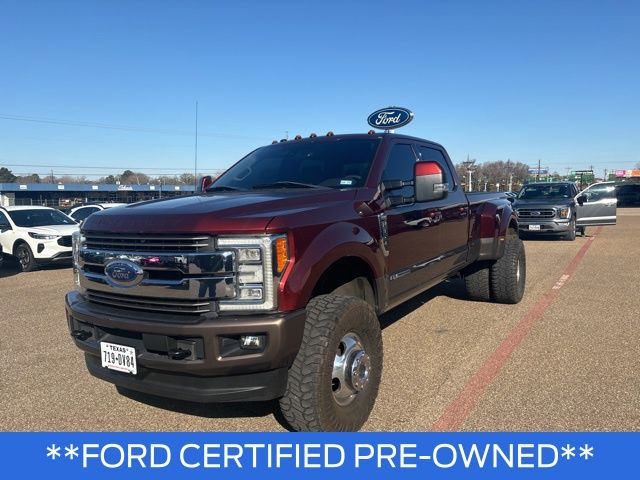 5th Wheel/Gooseneck Hitch Prep Package, GVWR: 14,000 lb Payload Package, King Ranch Ultimate Package (BLIS Blind Spot Information System, Multi-Contour Seats, Power-Deployable Running Boards, Quad Beam LED Headlamps & LED Taillamps, Tailgate Step & Handle, and Twin Panel Power Moonroof), Order Code 720A, Ford Blue Advantage: Blue Certified Certified, 4WD, Navigation System, 10 Speakers, 110V/400W Outlet, 17" Forged Polished Aluminum Wheels, 3.73 Axle Ratio, 4-Wheel Disc Brakes, ABS brakes, Adjustable pedals, Air Conditioning, Alloy wheels, AM/FM radio: SiriusXM, Auto High-beam Headlights, Auto tilt-away steering wheel, Auto-dimming Rear-View mirror, Automatic temperature control, Brake assist, CD player, Compass, Delay-off headlights, Driver door bin, Driver vanity mirror, Dual front impact airbags, Dual front side impact airbags, Dual rear wheels, Electronic Stability Control, Emergency communication system: SYNC 3 911 Assist, Exterior Parking Camera Rear, Flow-Through Console, Front anti-roll bar, Front Bucket Seats, Front Center Armrest, Front dual zone A/C, Front fog lights, Front reading lights, Front Splash Guards/Mud Flaps (Pre-Instlld) (DISC), Fully automatic headlights, Garage door transmitter, Heated door mirrors, Heated front seats, Heated steering wheel, Illuminated entry, Illuminated running boards, Leather steering wheel, Low tire pressure warning, Memory seat, Outside temperature display, Overhead airbag, Overhead console, Panic alarm, Passenger door bin, Passenger vanity mirror, Pedal memory, Power door mirrors, Power driver seat, Power passenger seat, Power steering, Power windows, Radio data system, Radio: Premium Sony Audio w/Single-CD/MP3 Player, Rain sensing wipers, Rear anti-roll bar, Rear CHMSL Camera, Rear Parking Sensors, Rear reading lights, Rear seat center armrest, Rear step bumper, Rear window defroster, Remote keyless entry, Security system, SiriusXM Radio, Speed control, Split folding rear seat, Steering wheel memory, Steering wheel mounted A/C controls, Steering wheel mounted audio controls, SYNC 3 Communications & Entertainment System, Tachometer, Telescoping steering wheel, Tilt steering wheel, Traction control, Trip computer, Turn signal indicator mirrors, Unique King Ranch Leather 40/Console/40 Front Seats, Upfitter Switches (6), Variably intermittent wipers, and Ventilated front