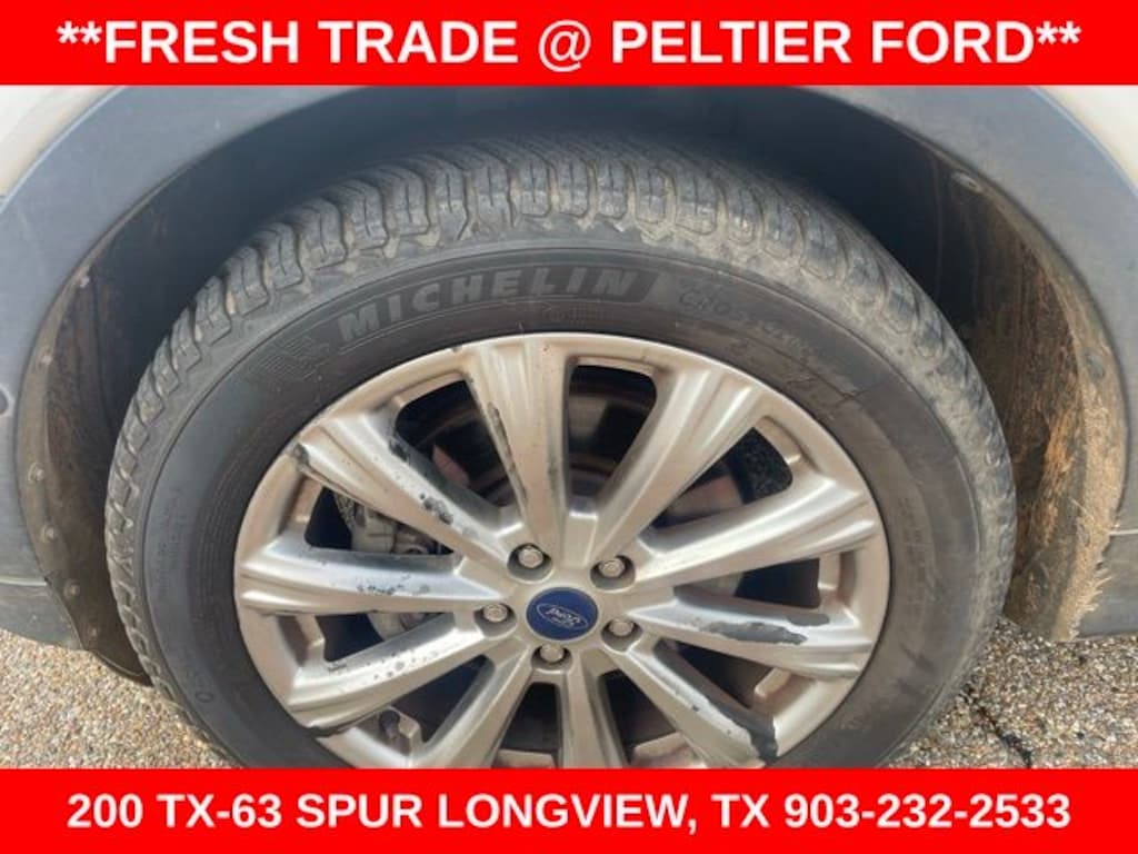 Equipment Group 400A, Ford Blue Advantage: Blue Certified Certified, 4WD, Navigation System, 10 Speakers, 3.07 Axle Ratio, 4-Wheel Disc Brakes, ABS brakes, Air Conditioning, Alloy wheels, AM/FM radio: SiriusXM, AppLink/Apple CarPlay and Android Auto, Auto-dimming Rear-View mirror, Automatic temperature control, Brake assist, Bumpers: body-color, CD player, Compass, Delay-off headlights, Driver door bin, Driver vanity mirror, Dual front impact airbags, Dual front side impact airbags, Electronic Stability Control, Emergency communication system: SYNC 3 911 Assist, Exterior Parking Camera Rear, Four wheel independent suspension, Front anti-roll bar, Front Bucket Seats, Front Center Armrest, Front dual zone A/C, Front fog lights, Front reading lights, Fully automatic headlights, Garage door transmitter, Heated door mirrors, Heated front seats, Heated Leather-Trimmed Front Bucket Seats, Heated steering wheel, High-Intensity Discharge Headlights, Illuminated entry, Interior Cargo Cover, Knee airbag, Leather Shift Knob, Low tire pressure warning, Memory seat, Occupant sensing airbag, Outside temperature display, Overhead airbag, Overhead console, Panic alarm, Passenger door bin, Passenger vanity mirror, Power door mirrors, Power driver seat, Power Liftgate, Power passenger seat, Power steering, Power windows, Radio data system, Radio: AM/FM Stereo w/Single-CD/MP3 Player, Rear anti-roll bar, Rear reading lights, Rear seat center armrest, Rear window defroster, Rear window wiper, Remote keyless entry, Roof rack: rails only, Security system, Speed control, Speed-sensing steering, Split folding rear seat, Steering wheel mounted audio controls, SYNC 3 Communications & Entertainment System, SYNC Connect, Tachometer, Telescoping steering wheel, Tilt steering wheel, Traction control, Trip computer, Turn signal indicator mirrors, Variably intermittent wipers, Voice-Activated Touchscreen Navigation System, and Wheels: 18" Sparkle Silver-Painted Aluminum.