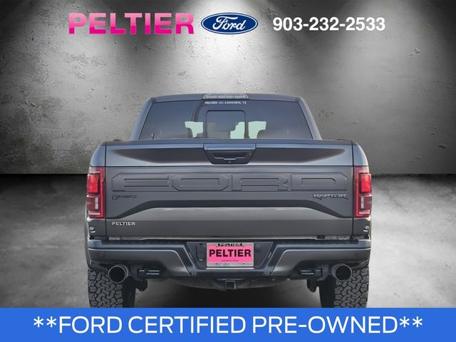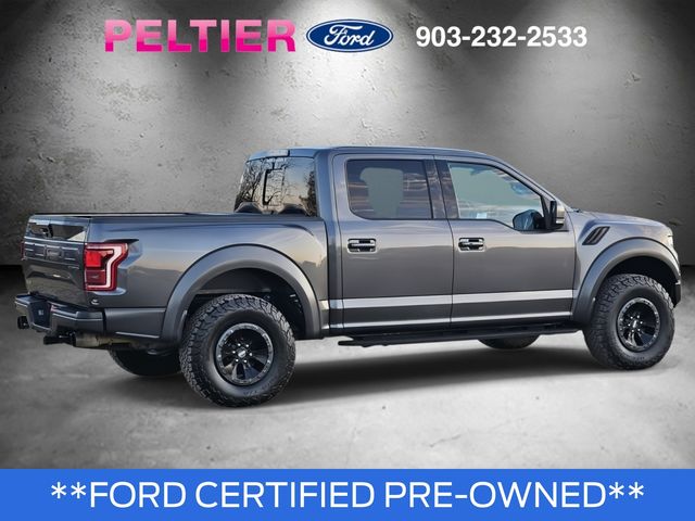Equipment Group 802A Luxury (360 Degree Camera, 4.10 Front Axle w/Torsen Differential, 8" Productivity Screen, Advanced Security Pack, Ambient Lighting - Ice Blue Color Only, BLIS Blind Spot Information System, Dual-Zone Electronic Automatic Temperature Control, Heated & Ventilated Leather 40/Console/40 Front Seats, Heated Steering Wheel, Inflatable Rear Safety Belts, Integrated Trailer Brake Controller, Intelligent Access w/Push-Button Start, LED Box Lighting, LED Sideview Mirror Spotlights, Memory System (Seat, Pedal, Exterior Mirror), Power Glass Heated Sideview Mirrors, Power Tilt/Telescoping Steering Column w/Memory, Power-Adjustable Pedals, Power-Sliding Rear Window, Pro Trailer Backup Assist, Radio: B&O Play Premium Audio System, Remote Start System w/Remote Tailgate Release, SYNC Connect, Tailgate Applique FORD, Universal Garage Door Opener, Voice-Activated Touchscreen Navigation System, 10-Way Power Driver & Passenger Seats, and SYNC 3), GVWR: 7,050 lbs Payload Package, Raptor Carbon Fiber Package (Unique Carbon Fiber Shift Knob), Raptor Technology Package (Adaptive Cruise Control w/Collision Mitigation, Auto High Beam, and Lane-Keeping System), Ford Blue Advantage: Blue Certified Certified, 4WD, 17" Cast Aluminum Wheels, 17" Forged Aluminum Bead-Lock Capable Wheels, 4-Wheel Disc Brakes, 7 Speakers, 8-Way Power Driver's Seat w/Power Lumbar, ABS brakes, Air Conditioning, Alloy wheels, AM/FM radio: SiriusXM, Auto-dimming Rear-View mirror, Brake assist, CD player, Compass, Delay-off headlights, Driver door bin, Driver vanity mirror, Dual front impact airbags, Dual front side impact airbags, Electronic Locking w/4.10 Axle Ratio, Electronic Stability Control, Emergency communication system: 911 Assist, Exterior Parking Camera Rear, Front anti-roll bar, Front Bucket Seats, Front Center Armr