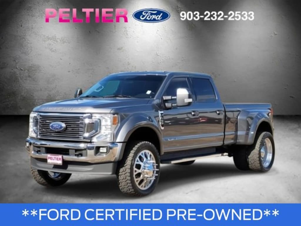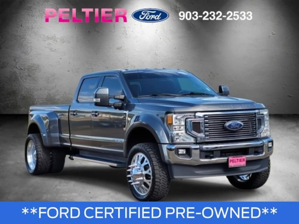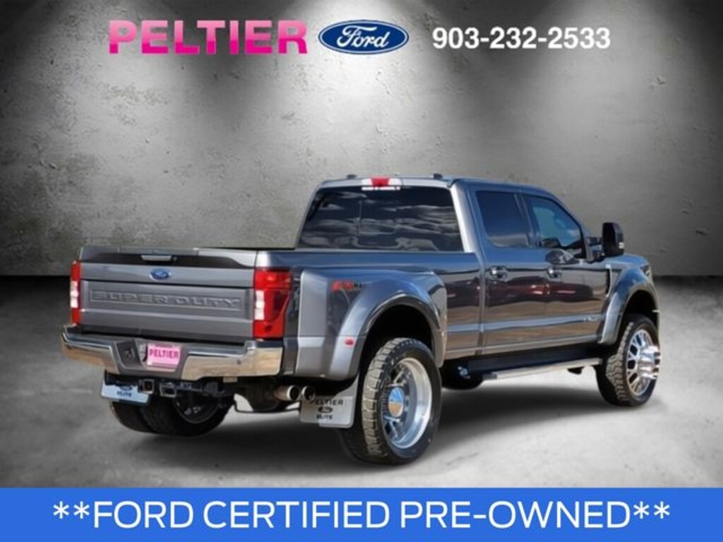 Camper Package, FX4 Off-Road Package (Hill Descent Control, Off-Road Specifically Tuned Shock Absorbers, and Unique FX4 Off-Road Box Decal), GVWR: 14,000 lb Payload Package, Lariat Value Package (Easy Entry®/Exit Memory Driver's Seat Feature, LED Box Lighting, Power Heated/Ventilated Driver Seat w/Memory, Power Heated/Ventilated Passenger Seat, Power-Adjustable Pedals with Memory, PowerScope Trailer Tow Mirrors w/Memory, and Remote Start System), Order Code 678A, Ford Gold Certified Certified, 4WD, 10 Speakers, 110V/400W Outlet, 19.5" Forged Polished Aluminum Wheels, 4-Wheel Disc Brakes, ABS brakes, Adjustable pedals, Air Conditioning, Alloy wheels, AM/FM radio: SiriusXM, Auto High-beam Headlights, Auto-dimming Rear-View mirror, Automatic temperature control, Brake assist, Bumpers: chrome, Compass, Delay-off headlights, Driver door bin, Driver vanity mirror, Dual front impact airbags, Dual front side impact airbags, Dual rear wheels, Electronic Stability Control, Emergency communication system: SYNC 3 911 Assist, Engine Block Heater, Exterior Parking Camera Rear, Flow-Through Console, Front anti-roll bar, Front Bucket Seats, Front Center Armrest, Front dual zone A/C, Front fog lights, Front Leather Seating Surfaces 40/Console/40, Front reading lights, Fully automatic headlights, Gooseneck Dual Hitch Kit (Pre-Installed), Heated door mirrors, Illuminated entry, Lane-Keeping Alert, Leather steering wheel, Limited Slip w/4.30 Axle Ratio, Outside temperature display, Overhead airbag, Overhead console, Panic alarm, Passenger door bin, Passenger vanity mirror, Power door mirrors, Power driver seat, Power passenger seat, Power steering, Power windows, PowerScope Trailer Tow Mirrors w/Heat, Pro Trailer Backup Assist, Radio data system, Radio: B&O System by Bang & Olufsen, Rear anti-roll bar, Rear Parking Sensors, Rear reading lights, Rear seat center armrest, Rear step bumper, Rear window defroster, Remote keyless entry, Security system, SiriusXM Radio, Speed control, Split folding rear seat, Steering wheel mounted audio controls, SYNC 3 Communications & Entertainment System, Tachometer, Tailgate Step & Handle, Telescoping steering wheel, Tilt steering wheel, Traction control, Trip computer, Turn signal indicator mirrors, Ultimate Trailer Tow Camera System, Upfitter Switches (6), Variably intermittent wipers, and Voice-Activated Navigation.