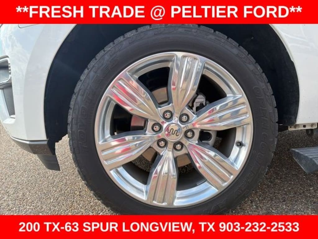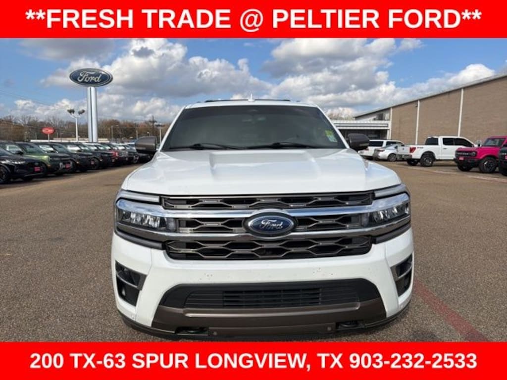 Equipment Group 400A Standard Package, Ford Blue Advantage: Blue Certified Certified, 4WD, 22 Speakers, Air Conditioning, AM/FM radio: SiriusXM with 360L, Automatic temperature control, Front dual zone A/C, Navigation System, Navigation system: Connected Navigation, Radio data system, Radio: B&O Unleashed Sound System by Bang & Olufsen, Rear air conditioning, Rear window defroster, SiriusXM w/360L, SYNC 4 w/Enhanced Voice Recognition, 1st & 2nd Row Floor Liners w/Carpet Mats, 3.31 Axle Ratio, 3.73 Axle Ratio, 3rd row seats: split-bench, 4-Wheel Disc Brakes, ABS brakes, Active Park Assist 2.0 Removal, Adaptive suspension, Adjustable pedals, Advanced Cargo Manager, Alloy wheels, Auto High-beam Headlights, Auto Start-Stop Removal, Auto-dimming door mirrors, Auto-dimming Rear-View mirror, Brake assist, Bumpers: body-color, Compass, Continuous Controlled Damping (CCD), Delay-off headlights, Driver door bin, Driver vanity mirror, Dual front impact airbags, Dual front side impact airbags, Electronic Stability Control, Emergency communication system: SYNC 4 911 Assist, Exterior Parking Camera Rear, Four wheel independent suspension, Front anti-roll bar, Front Bucket Seats, Front Center Armrest, Front fog lights, Front reading lights, Fully automatic headlights, Garage door transmitter, Genuine wood console insert, Genuine wood dashboard insert, Genuine wood door panel insert, Hands-Free Foot-Activated Feature Removal, Heated door mirrors, Heated front seats, Heated rear seats, Heated steering wheel, Heated/Ventilated Del Rio Lthr Fr Captain's Chairs, Illuminated entry, Leather steering wheel, Low tire pressure warning, Memory seat, Occupant sensing airbag, Outside temperature display, Overhead airbag, Overhead console, Panic alarm, Passenger door bin, Passenger vanity mirror, Pedal memory, Power door mirrors, Power driver seat, Power Liftgate, Power moonroof, Power passenger seat, Power steering, Power windows, Rain sensing wipers, Rear anti-roll bar, Rear reading lights, Rear window wiper, Reclining 3rd row seat, Remote keyless entry, Second Row Power Windows Removal, Security system, Speed control, Speed-sensing steering, Speed-Sensitive Wipers, Split folding rear seat, Spoiler, Steering wheel memory, Steering wheel mounted audio controls, Tachometer, Telescoping steering wheel, Tilt steering wheel, Traction control, Trip computer, Turn signal indicator mirrors, Variably intermittent wipers, Ventilated front seats, Voltmeter, and Wheels: 22" 6-Spoke Polished Aluminum.