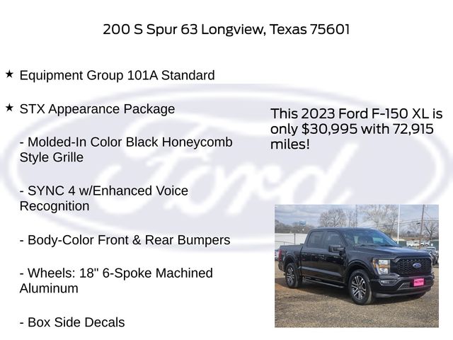 Clean CARFAX. CARFAX One-Owner. Agate Black Metallic 2023 Ford 2.7L V6 EcoBoost 4D SuperCrew F-150 XL 10-Speed Automatic RWD