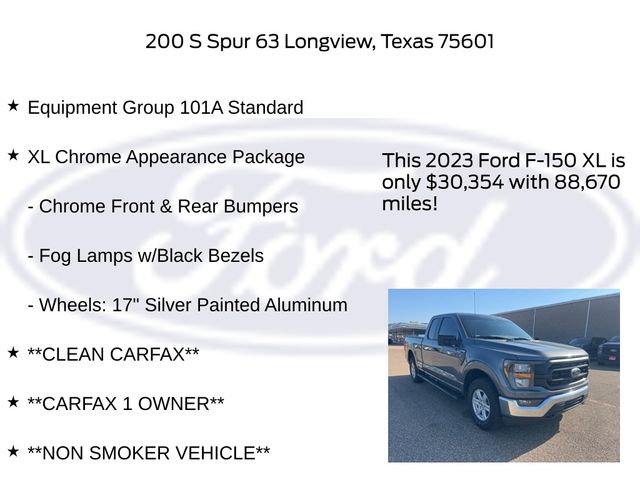 CARFAX One-Owner. Gray Metallic 2023 Ford 5.0L V8 Super Cab F-150 XL 10-Speed Automatic 4WD