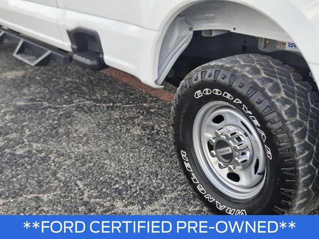 GVWR: 10,000 lb Payload Package, Order Code 600A, XL Chrome Package (BoxLink, Bright Chrome Hub Covers & Center Ornaments, Chrome Front Bumper, Chrome Rear Step Bumper, and Halogen Fog Lamps), XL Off-Road Package (Rear Electronic Locking Differential), Ford Gold Certified Certified, 4WD, 17" Argent Painted Steel Wheels, 190 Amp Alternator, 3.73 Axle Ratio, 4 Speakers, 4-Wheel Disc Brakes, ABS brakes, Air Conditioning, AM/FM radio, AM/FM Stereo w/MP3 Player, Brake assist, Compass, Delay-off headlights, Dual 68 AH/65 AGM Batteries, Dual front impact airbags, Dual front side impact airbags, Electronic Stability Control, Emergency communication system: SYNC 4 911 Assist, Exterior Parking Camera Rear, Front anti-roll bar, Front Center Armrest w/Storage, Front reading lights, Fully automatic headlights, HD Vinyl 40/20/40 Split Bench Seat, Heated door mirrors, Illuminated entry, Interior Work Surface, Low tire pressure warning, Outside temperature display, Overhead airbag, Overhead console, Panic alarm, Passenger vanity mirror, Power door mirrors, Power steering, Power windows, Rear reading lights, Rear step bumper, Remote keyless entry, Speed control, Split folding rear seat, Steering wheel mounted audio controls, SYNC 4, Tachometer, Telescoping steering wheel, Tilt steering wheel, Traction control, Trip computer, Turn signal indicator mirrors, Upfitter Switches (6), and Variably intermittent wipers.