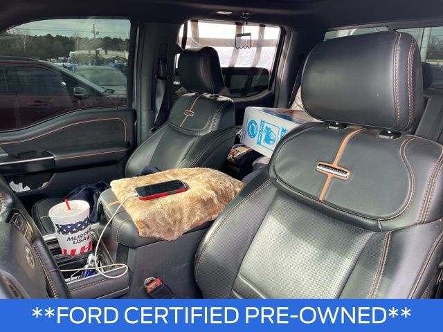 5th Wheel/Gooseneck Hitch Prep Package, FX4 Off-Road Package (Hill Descent Control, Off-Road Specifically Tuned Shock Absorbers, and Unique FX4 Off-Road Box Decal), GVWR: 14,000 lb Payload Package, Order Code 723A, Ford Gold Certified Certified, 4WD, Power moonroof, Tough Bed Spray-In Bedliner, 14 Speakers, 17" Forged Polished Aluminum Wheels, 4-Wheel Disc Brakes, ABS brakes, Adjustable pedals, Air Conditioning, Alloy wheels, AM/FM radio: SiriusXM with 360L, Auto High-beam Headlights, Auto tilt-away steering wheel, Auto-dimming Rear-View mirror, Automatic temperature control, Brake assist, Bumpers: body-color, Compass, Delay-off headlights, Driver door bin, Driver vanity mirror, Dual front impact airbags, Dual front side impact airbags, Dual rear wheels, Electronic Stability Control, Emergency communication system: SYNC 4 911 Assist, Engine Block Heater, Exterior Parking Camera Rear, Flow-Through Console, Front anti-roll bar, Front Bucket Seats, Front Center Armrest, Front dual zone A/C, Front fog lights, Front License Plate Bracket, Front reading lights, Fully automatic headlights, Garage door transmitter, Heads-Up Display, Heated door mirrors, Heated front seats, Heated rear seats, Heated steering wheel, Illuminated entry, Leather steering wheel, Limited Slip w/3.55 Axle Ratio, Limited Slip w/3.73 Axle Ratio, Low tire pressure warning, Memory seat, Navigation system: Connected Navigation (includes complimentary 1-year trial), Outside temperature display, Overhead airbag, Overhead console, Panic alarm, Passenger door bin, Passenger vanity mirror, Pedal memory, Power door mirrors, Power driver seat, Power passenger seat, Power steering, Power windows, Radio: B&O Unleashed Sound System by Bang & Olufsen, Rain sensing wipers, Rear anti-roll bar, Rear reading lights, Rear seat center armrest, Rear step bumper, Rear window defroster, Remote keyless entry, Security system, SiriusXM Radio w/360L, Speed control, Split folding rear seat, Steering wheel memory, Steering wheel mounted A/C controls, Steering wheel mounted audio controls, SYNC 4 w/Enhanced Voice Recognition, Tachometer, Telescoping steering wheel, Tilt steering wheel, Traction control, Trip computer, Turn signal indicator mirrors, Unique Platinum Leather 40/Console/40 Seats, Variably intermittent wipers, and Ventilated front seats.