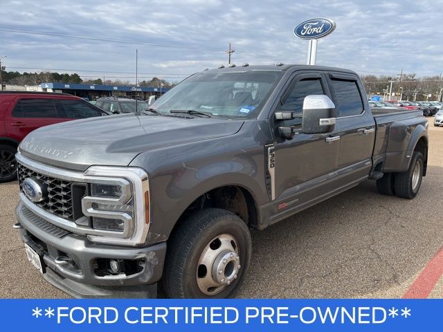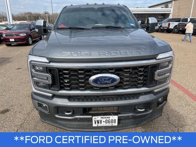 CARFAX One-Owner. Gray Metallic 2024 Ford 6.7L High Output Power Stroke V8 Diesel 4D Crew Cab F-350SD Platinum DRW 10-Speed Automatic 4WD