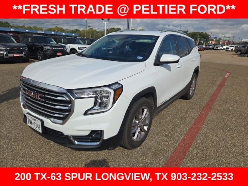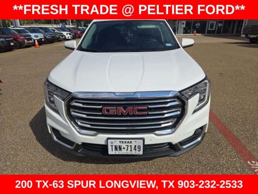 License Plate Front Mounting Package, Preferred Equipment Group 4SA, Ford Blue Advantage: Blue Certified Certified, 2 USB Data Ports, 2 USB Data Ports w/SD Card Reader, 3.47 Axle Ratio, 4-Wheel Disc Brakes, 6 Speakers, 6-Speaker Audio System Feature, 6-Way Power Front Passenger Seat, 8-Way Power Driver Seat Adjuster, ABS brakes, Air Conditioning, Alloy wheels, AM/FM radio: SiriusXM, Auto High-beam Headlights, Auto-dimming Rear-View mirror, Automatic temperature control, Bluetooth® For Phone, Brake assist, Bumpers: body-color, Compass, Delay-off headlights, Driver & Front Passenger Heated Seats, Driver door bin, Driver vanity mirror, Dual front impact airbags, Dual front side impact airbags, Electronic Stability Control, Emergency communication system: OnStar and GMC connected services capable, Four wheel independent suspension, Front anti-roll bar, Front Bucket Seats, Front Center Armrest, Front dual zone A/C, Front fog lights, Front Passenger 2-Way Power Lumbar, Front reading lights, Fully automatic headlights, Garage door transmitter, Heated door mirrors, Heated front seats, Heated steering wheel, Illuminated entry, Low tire pressure warning, Memory seat, Occupant sensing airbag, Outside temperature display, Overhead airbag, Overhead console, Panic alarm, Passenger door bin, Passenger vanity mirror, Perforated Leather-Appointed Seat Trim, Power door mirrors, Power Driver Lumbar Control, Power driver seat, Power Liftgate, Power passenger seat, Power steering, Power windows, Radio data system, Radio: GMC Infotainment Audio System w/8" Display, Rear anti-roll bar, Rear seat center armrest, Rear window defroster, Rear window wiper, Remote keyless entry, Roof rack: rails only, Security system, SiriusXM Radio, Speed control, Speed-sensing steering, Split folding rear seat, Spoiler, Steering wheel mounted audio controls, Tachometer, Telescoping steering wheel, Tilt steering wheel, Traction control, Trip computer, Turn signal indicator mirrors, Variably intermittent wipers, Wheels: 18" x 7" Silver Painted Aluminum, and Wireless Apple CarPlay/Wireless Android Auto.