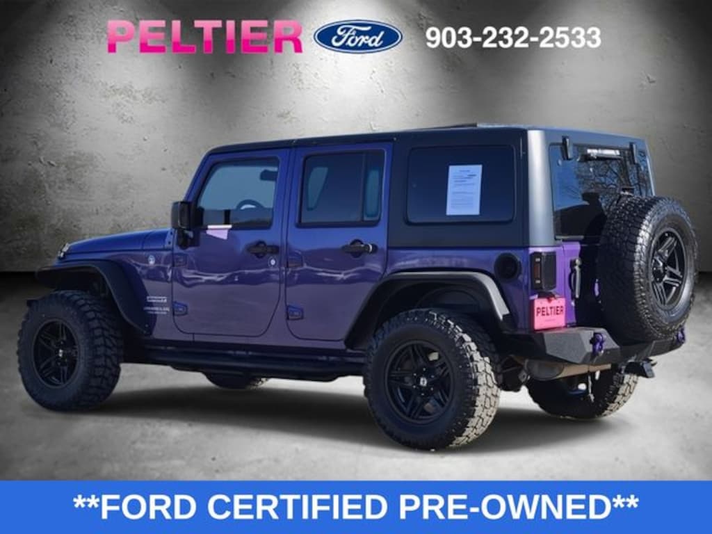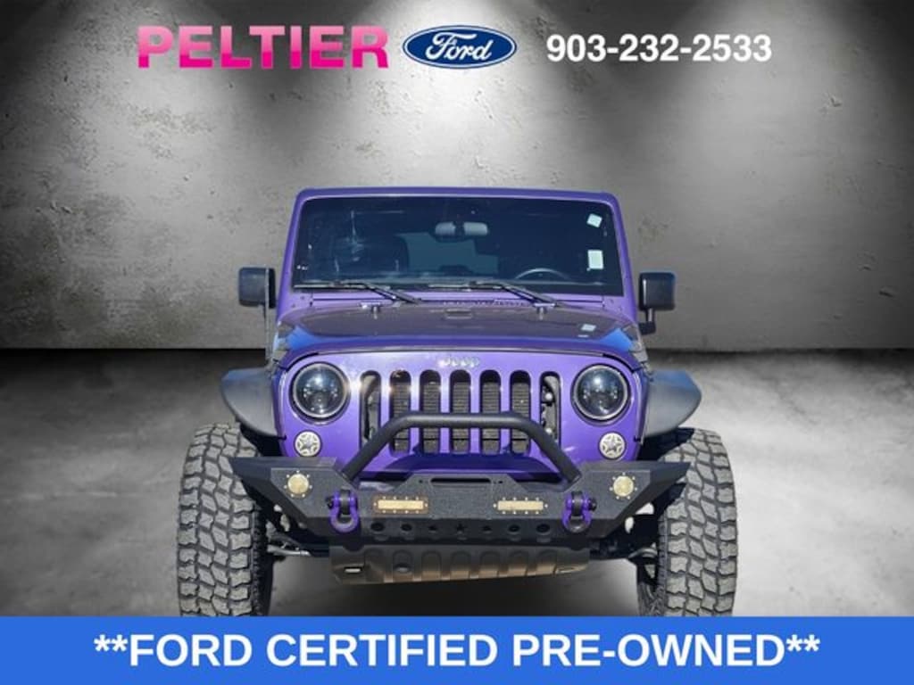Connectivity Group (Remote USB Port, Tire Pressure Monitoring Display, Uconnect Voice Command w/Bluetooth, and Vehicle Information Center), Quick Order Package 24C, Ford Blue Advantage: Blue Certified Certified, 1-Yr SiriusXM Radio Service, 16" x 7.0" Luxury Styled Steel Wheels, 4-Wheel Disc Brakes, 8 Speakers, ABS brakes, Air Conditioning, AM/FM radio, Anti-Spin Differential Rear Axle, Black 3-Piece Hard Top, Brake assist, CD player, Cloth Seats w/Adjustable Head Restraints, Compass, Delete Sunrider Soft Top, Driver door bin, Driver vanity mirror, Dual front impact airbags, Electronic Stability Control, Freedom Panel Storage Bag, Front anti-roll bar, Front Bucket Seats, Front Center Armrest w/Storage, Front fog lights, Integrated roll-over protection, Low tire pressure warning, Manufacturer's Statement of Origin, Normal Duty Suspension, Occupant sensing airbag, Outside temperature display, Passenger door bin, Passenger vanity mirror, Power steering, Radio: 130, Rear anti-roll bar, Rear Window Defroster, Rear Window Wiper/Washer, SIRIUS Satellite Radio, Speed control, Split folding rear seat, Steering wheel mounted audio controls, Tachometer, Tilt steering wheel, Traction control, Trip computer, and Variably intermittent wipers.