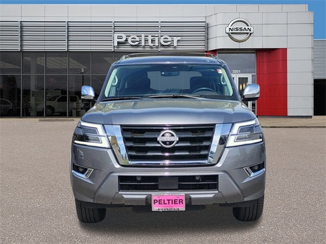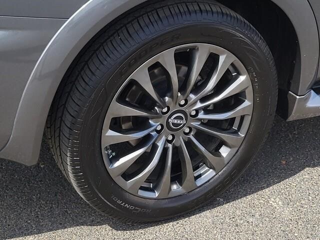 Captain's Chairs Package (2nd Row Captain's Chairs and 2nd Row Center Console w/Padded Armrest), Cargo Package, Nissan Certified Certified, 13 Speakers, 2.94 Axle Ratio, 3rd Row Carpeted Floor Mats - Captain Seat, 3rd row seats: split-bench, 4-Wheel Disc Brakes, A/V remote, ABS brakes, Air Conditioning, Alloy wheels, AM/FM radio: SiriusXM, Anti-whiplash front head restraints, Auto High-beam Headlights, Auto tilt-away steering wheel, Auto-dimming door mirrors, Auto-dimming Rear-View mirror, Auto-leveling suspension, Automatic temperature control, Bose 13-Speaker Premium Audio System, Brake assist, Bumpers: body-color, Climate-Controlled Front Bucket Seats, Cross Bars, Delay-off headlights, Driver door bin, Driver vanity mirror, Dual front impact airbags, Dual front side impact airbags, Electronic Stability Control, Emergency communication system: NissanConnect Services, Exterior Parking Camera Rear, Four wheel independent suspension, Front anti-roll bar, Front Bucket Seats, Front Center Armrest, Front dual zone A/C, Front fog lights, Front reading lights, Fully automatic headlights, Garage door transmitter: HomeLink, Headphones, Heated door mirrors, Heated front seats, Heated rear seats, Heated steering wheel, Illuminated entry, Illuminated Kick Plates, Illuminated Scuff Plate, Knee airbag, Leather Shift Knob, Low tire pressure warning, Memory seat, Navigation System, NissanConnect featuring Apple CarPlay and Android Auto, Occupant sensing airbag, Outside temperature display, Overhead airbag, Overhead console, Panic alarm, Passenger door bin, Passenger vanity mirror, Power door mirrors, Power driver seat, Power Liftgate, Power moonroof, Power passenger seat, Power steering, Power windows, Premium audio system: Bose, Quilted Leather Seat Trim, Radio: NissanConnect w/SiriusXM, Rain sensing wipers, Rear air conditioning, Rear anti-roll bar, Rear reading lights, Rear seat center armrest, Rear window defroster, Rear window wiper, Rear-Seat Entertainment, Reclining 3rd row seat, Remote keyless entry, Security system, Speed control, Speed-sensing steering, Speed-Sensitive Wipers, Split folding rear seat, Spoiler, Steering wheel memory, Steering wheel mounted audio controls, Tachometer, Telescoping steering wheel, Tilt steering wheel, Traction control, Trip computer, Turn signal indicator mirrors, Variably intermittent wipers, Ventilated front seats, Voltmeter, and Wheels: 22" x 8J Machine-Faced w/Tinted Clear Coat.