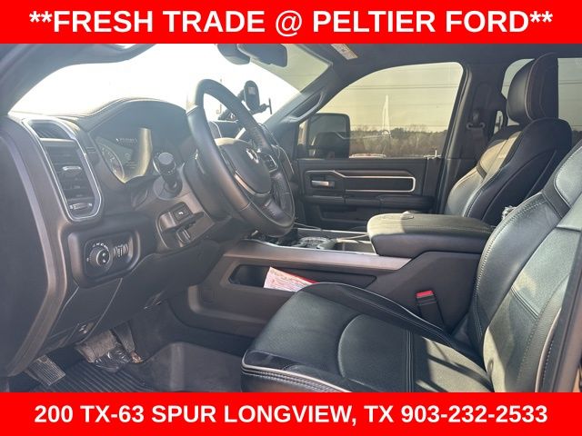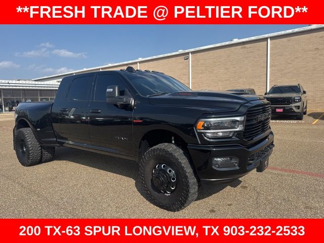 Laramie Level 1 Equipment Group (12" Touchscreen Display, 18" x 8" Polished Aluminum Wheels, 4G LTE Wi-Fi Hot Spot, Alexa Built-In, Apple CarPlay, Auto Dimming Exterior Passenger Mirror, Auto High Beam Headlamp Control, Blind Spot & Cross Path Detection, Center Hub, Connected Travel & Traffic Services, Connectivity - US/Canada, Disassociated Touchscreen Display, Exterior Mirrors Courtesy Lamps, Exterior Mirrors w/Heating Element, Exterior Mirrors w/Memory, Exterior Mirrors w/Supplemental Signals, For Details Visit DriveUconnect.com, For More Info, Call 800-643-2112, Global Telematics Box Module (TBM), Google Android Auto, GPS Antenna Input, GPS Navigation, HD Radio, Integrated Voice Command w/Bluetooth, Mirror Running Lights, Off-Road Information Pages, Power Adjust Mirrors, Power Telescoping Mirrors, Power-Adjustable Convex Aux Mirrors, Radio: Uconnect 5 Nav w/12.0" Display, Rear Window Defroster, Selectable Tire Fill Alert, SiriusXM Radio Service, SiriusXM w/360L, and Trailer Tow Pages), Night Edition, Protection Group, Quick Order Package 21H Laramie, Towing Technology Group (Center Stop Lamp w/Cargo View Camera and Trailer Reverse Guidance), Ford Blue Advantage: Blue Certified Certified, 10 Speakers, 115V Auxiliary Rear Power Outlet, 2 Way Rear Headrest Seat, 220 Amp Alternator, 3.73 Axle Ratio, 4 Way Front Headrests, 4-Wheel Disc Brakes, ABS brakes, Active Noise Control System, Air Conditioning, Alloy wheels, AM/FM radio: SiriusXM with 360L, Apple CarPlay/Android Auto, Auto-dimming Rear-View mirror, Automatic temperature control, Black Exterior Mirrors, Brake assist, Bumpers: body-color, Clearance Lamps, Compass, Delay-off headlights, Driver door bin, Driver vanity mirror, Dual front impact airbags, Dual front side impact airbags, Dual Rear Wheels, Electronic Stability Control, Electronically Controlled Throttle, Front anti-roll bar, Front Center Armrest w/Storage, Front dual zone A/C, Front License Plate Bracket, Front reading lights, Front Seat Back Map Pockets, Fully automatic headlights, Garage door transmitter, Heated door mirrors, Heated Front Seats, Heated front seats, Heated Steering Wheel, Heated steering wheel, High Back Seats, Illuminated entry, Leather steering wheel, Leather Trim 40/20/40 Bench Seat, Low tire pressure warning, MOPAR Front & Rear Rubber Floor Mats, MOPAR Spray In Bedliner, Navigation System, Occupant sensing airbag, Outside temperature display, Overhead airbag, Overhead console, Panic alarm, ParkView Rear Back-Up Camera, Passenger door bin, Passenger vanity mirror, Power 2-Way Driver Lumbar Adjust, Power 2-Way Passenger Lumbar Adjust, Power 8-Way Adjustable Passenger Seat, Power Adjust 8-Way Driver Seat, Power door mirrors, Power driver seat, Power passenger seat, Power steering, Power windows, Radio data system, Radio: Uconnect 5 Nav w/8.4" Display, Rear 60/40 Folding Seat, Rear reading lights, Rear seat center armrest, Rear step bumper, Remote keyless entry, Security system, Speed control, Split folding rear seat,