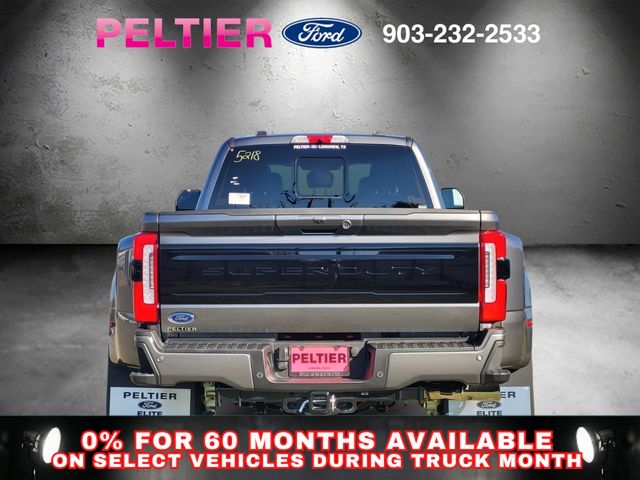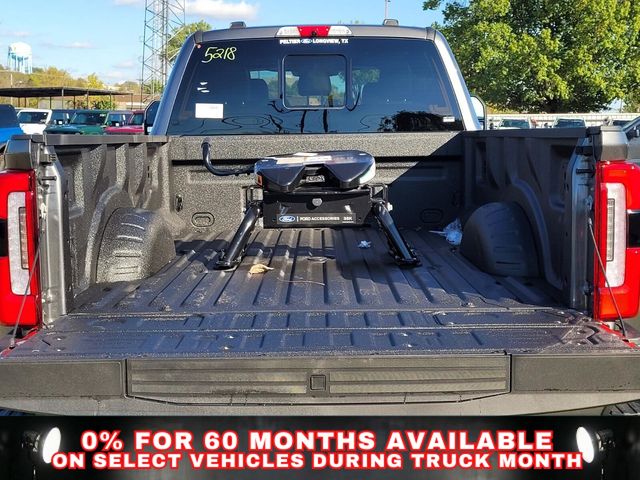 Camper Package (Rear Stabilizer Bar and Auxiliary Springs), Ford Connectivity Package (1-Year Included), FX4 Off-Road Package (Hill Descent Control, Off-Road Specifically Tuned Shock Absorbers, and Unique FX4 Off-Road Box Decal), GVWR: 14,000 Lb Payload Package, Internet access capable: 5G Modem - Ford Connectivity Package, 4WD, 19.5" Forged Polished Aluminum Wheels, 35K 5th Wheel Hitch Kit, 4-Wheel Disc Brakes, 410 Amp Dual Alternators, ABS brakes, Adjustable pedals, Air Conditioning, All-Weather Floor Mats, Alloy wheels, AM/FM radio: SiriusXM with 360L, Auto High-beam Headlights, Auto-dimming Rear-View mirror, Automatic temperature control, Brake assist, Compass, Delay-off headlights, Driver door bin, Driver vanity mirror, Dual front impact airbags, Dual front side impact airbags, Dual rear wheels, Electronic Stability Control, Emergency communication system: SYNC 4 911 Assist, Engine Block Heater, Flow-Through Console, Front anti-roll bar, Front Bucket Seats, Front Center Armrest, Front dual zone A/C, Front fog lights, Front License Plate Bracket, Front reading lights, Front Wheel Well Liners, Fully automatic headlights, Garage door transmitter, Heated door mirrors, Heated front seats, Heated rear seats, Heated steering wheel, Illuminated entry, Limited Slip with 4.30 Axle Ratio, Low tire pressure warning, Memory seat, Navigation system: Connected Navigation, Outside temperature display, Overhead airbag, Overhead console, Panic alarm, Passenger door bin, Passenger vanity mirror, Pedal memory, Power door mirrors, Power driver seat, Power passenger seat, Power steering, Power windows, Radio: B&O Unleashed Sound System by Bang & Olufsen, Rain sensing wipers, Rapid-Heat Supplemental Cab Heater, Rear anti-roll bar, Rear reading lights, Rear seat center armrest, Rear Splash Guards/Mud Flaps, Rear step bumper, Rear window defroster, Remote keyless entry, SecuriCode Keyless Entry Keypad (driver's Side), Security system, SiriusXM with 360L, SiriusXM with 360L (3-Year Plan), Speed control, Split folding rear seat, Steering wheel mounted audio controls, SYNC 4 with Enhanced Voice Recognition, Tachometer, Telescoping steering wheel, Tilt steering wheel, Tough Bed Spray-in Bedliner, Traction control, Trip computer, Turn signal indicator mirrors, Twin Panel Power Moonroof, Upfitter Switches (6), Variably intermittent wipers, Vehicle Safe by Console Vault, and Ventilated front seats.