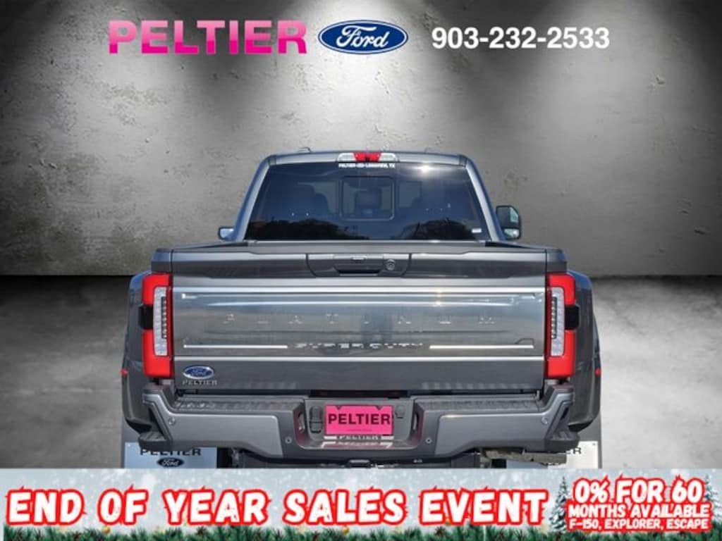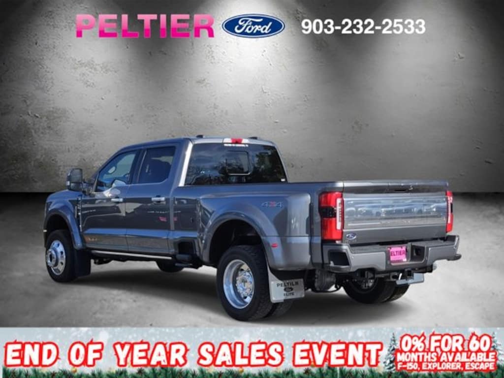 Ford Connectivity Package (1-Year Included), GVWR: 14,000 lb Payload Package, Internet access capable: 5G Modem - Ford Connectivity Package, 4WD, 19.5" Forged Polished Aluminum Wheels, 4-Wheel Disc Brakes, ABS brakes, Adjustable pedals, Air Conditioning, All-Weather Floor Mats, Alloy wheels, AM/FM radio: SiriusXM with 360L, Auto High-beam Headlights, Auto-dimming Rear-View mirror, Automatic temperature control, Brake assist, Compass, Delay-off headlights, Driver door bin, Driver vanity mirror, Dual front impact airbags, Dual front side impact airbags, Dual rear wheels, Electronic Stability Control, Emergency communication system: SYNC 4 911 Assist, Engine Block Heater, Exterior Backup Alarm, Flow-Through Console, Front anti-roll bar, Front Bucket Seats, Front Center Armrest, Front dual zone A/C, Front fog lights, Front License Plate Bracket, Front reading lights, Front Wheel Well Liners, Fully automatic headlights, Garage door transmitter, Heated door mirrors, Heated front seats, Heated rear seats, Heated steering wheel, Illuminated entry, Limited Slip w/4.30 Axle Ratio, Low tire pressure warning, Memory seat, Navigation system: Connected Navigation, Outside temperature display, Overhead airbag, Overhead console, Panic alarm, Passenger door bin, Passenger vanity mirror, Pedal memory, Power door mirrors, Power driver seat, Power passenger seat, Power steering, Power windows, Radio: B&O Unleashed Sound System by Bang & Olufsen, Rain sensing wipers, Rapid-Heat Supplemental Cab Heater, Rear anti-roll bar, Rear reading lights, Rear seat center armrest, Rear step bumper, Rear window defroster, Remote keyless entry, Retractable Bed Side-Step, SecuriCode Keyless Entry Keypad (Driver's Side), Security system, SiriusXM w/360L, Speed control, Split folding rear seat, Steering wheel mounted audio controls, SYNC 4 w/Enhanced Voice Recognition, Tachometer, Telescoping steering wheel, Tilt steering wheel, Tough Bed Spray-In Bedliner, Traction control, Trip computer, Turn signal indicator mirrors, Variably intermittent wipers, and Ventilated front seats.