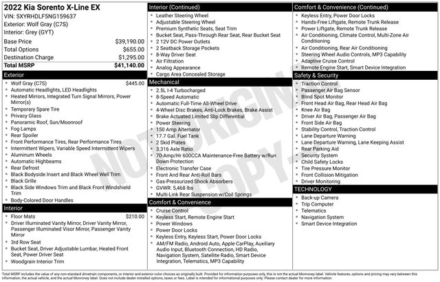 Engine: 2.5L I-4 cyl, Transmission: 8-Speed DCT, Mileage: 38,006 miles miles, Exterior Color: Wolf Gray, Interior Color: Grey,Stock #: T10708A, VIN: 5XYRHDLF5NG159637, EPA-Est MPG6: 22/27 mpg