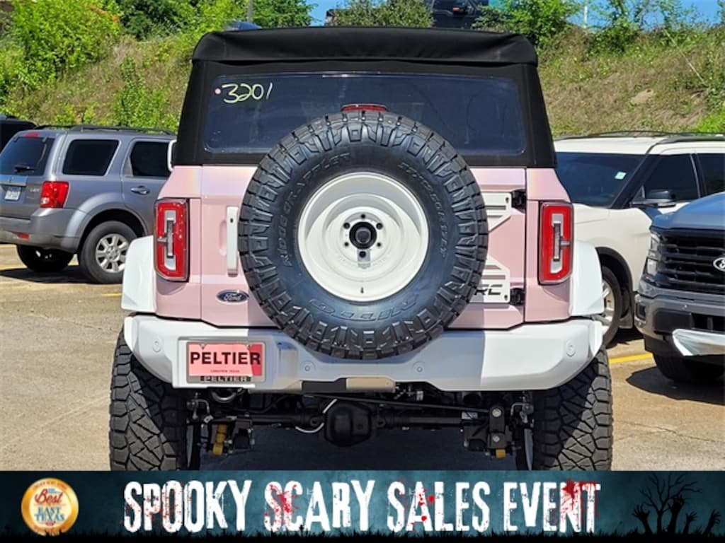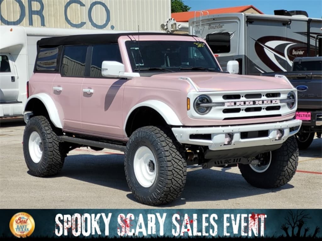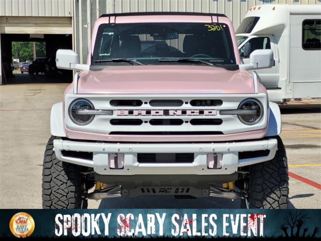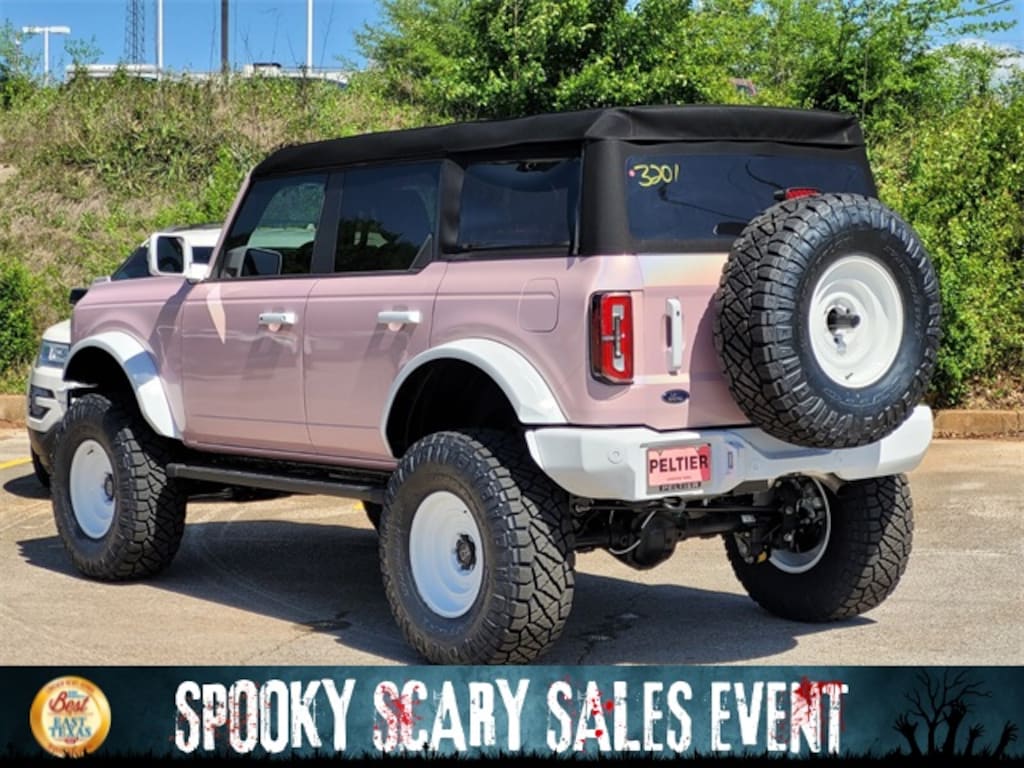 Equipment Group 314A High/Lux Package (10 Speakers w/Subwoofer, 360-Degree Camera, Adaptive Cruise Control, Additional Sound Deadening, Evasive Steering Assist, Front Parking Sensors, Heated Steering Wheel, Information on Demand Panel, Radio: B&O Sound System by Bang & Olufsen, Sideview Mirrors, Universal Garage Door Opener, and Wireless Charging Pad), Sasquatch Package (4.7 Final Drive Ratio, High Clearance Fender Flares, High Clearance Suspension, Position-Sensitive Bilstein Shock Absorbers, and Wheels: 17" Black High Gloss-Painted Aluminum), 18" Bright Machined Aluminum Wheels, 3.73 Axle Ratio, 4-Wheel Disc Brakes, 7 Speakers, ABS brakes, Air Conditioning, Alloy wheels, AM/FM radio: SiriusXM with 360L, AM/FM Stereo, Auto High-beam Headlights, Auto-dimming Rear-View mirror, Automatic temperature control, Auxiliary Switches, Brake assist, Compass, Connected Navigation, Delay-off headlights, Driver door bin, Driver vanity mirror, Dual front impact airbags, Dual front side impact airbags, Electronic Stability Control, Emergency communication system: 911 Assist, Exterior Parking Camera Rear, Ford Performance Heavy-Duty Modular Front Bumper, Front anti-roll bar, Front Bucket Seats, Front Center Armrest, Front dual zone A/C, Front fog lights, Front License Plate Bracket, Front reading lights, Front wheel independent suspension, Fully automatic headlights, Heated door mirrors, Heated front seats, Heated Leather-Trimmed/Vinyl Bucket Seats, Illuminated entry, Integrated roll-over protection, Leather Shift Knob, Low tire pressure warning, Navigation system: Connected Navigation, Occupant sensing airbag, Outside temperature display, Overhead airbag, Overhead console, Panic alarm, Passenger door bin, Passenger vanity mirror, Power door mirrors, Power driver seat, Power passenger seat, Power steering, Power windows, Radio data system, Rear seat center armrest, Remote keyless entry, Security system, SiriusXM Radio w/360L, Speed control, Split folding rear seat, Steering wheel mounted audio controls, SYNC 4, Tachometer, Telescoping steering wheel, Tilt steering wheel, Traction control, Trip computer, Variably intermittent wipers, and Voltmeter. Price includes: $4000 - Model Year Closeout Bonus Cash - Bronco Price includes dealer added accessories.