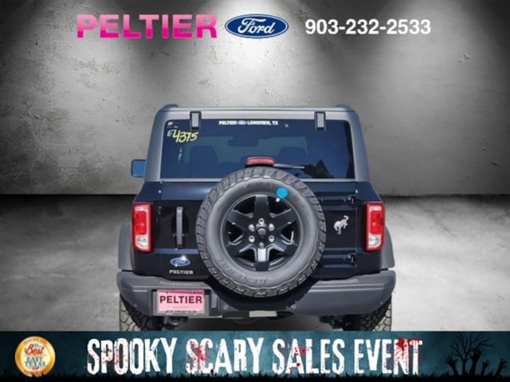 Black Diamond Package (Auxiliary Switches, LED Fog Lamps, Powder Coated Steel Front & Rear Bumpers, Rock Rails, Washout Capable Rubberized Flooring, and Wheels: 17" Black High Gloss Painted Aluminum), Equipment Group 222A Mid Package (2-Door Intelligent Access w/Lock/Unlock, Ambient Footwell Lighting, Connected Navigation, Dr & Pass Illuminated Sliding Visor Vanity Mirrors, Dual Smart Charging USB Ports, Dual-Zone Electronic Automatic Temperature Control, Front Row Heated Seats, Power Outlet - Back Side of Center Floor Console, and Rear Parking Sensors), 4-Wheel Disc Brakes, 7 Speakers, ABS brakes, Air Conditioning, Alloy wheels, AM/FM radio: SiriusXM with 360L, AM/FM Stereo, Auto High-Beam Headlamps, Auto High-beam Headlights, BLIS Blind Spot Information System, Brake assist, Carbonized Gray Molded-In-Color Hard Top, Cloth Bucket Seats, Compass, Delay-off headlights, Driver door bin, Driver vanity mirror, Dual front impact airbags, Dual front side impact airbags, Electronic Stability Control, Emergency communication system: 911 Assist, Exterior Parking Camera Rear, Front anti-roll bar, Front Bucket Seats, Front Center Armrest, Front License Plate Bracket, Front reading lights, Front wheel independent suspension, Fully automatic headlights, Hard Top Sound Deadening Headliner, Heated door mirrors, Illuminated entry, Integrated roll-over protection, Lane-Keeping System, Leather Shift Knob, Low tire pressure warning, Occupant sensing airbag, Outside temperature display, Overhead airbag, Overhead console, Panic alarm, Passenger door bin, Passenger vanity mirror, Power door mirrors, Power steering, Power windows, Pre-Collision Assist w/Automatic Emergency Braking, Radio data system, Rear-View Camera, Rear-Window Defroster & Washer, Remote keyless entry, Security system, SiriusXM w/360L, Speed control, Split folding rear seat, Steering wheel mounted audio controls, SYNC 4, Tachometer, Telescoping steering wheel, Tilt steering wheel, Traction control, Trip computer, Variably intermittent wipers, and Wheels: 17" Carbonized Gray-Painted Aluminum. Price includes: $2000 - Retail Bonus Cash