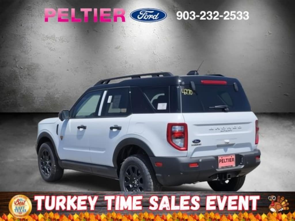 Oxford White 2025 Ford Bronco Sport Badlands 4WD EcoBoost 2.0L I4 GTDi DOHC Turbocharged VCT 21/27 City/Highway MPG