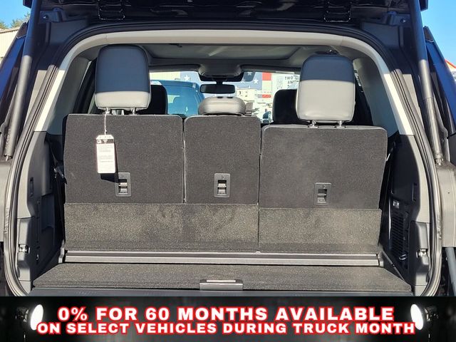 Equipment Group 202A High Package (110V/400W AC Power Outlet, 2nd Row Power-Folding Captain's Chairs, 360-Degree Zone Lighting, 3rd Row Flexible Seating, 3rd Row Vinyl Seats, 4-Door Intelligent Access (Lock/Unlock), ActiveX Front Heated Captain's Chairs, BlueCruise Equipped, Flex Powered Console, Ford Split Gate, Front Side Laminated Glass, Heated Steering Wheel, Memory Driver Seat, Power Panoramic Vista Roof w/Power Sunshade, Power Tilt/Telescopic Steering Wheel w/Memory, Power-Folding Sideview Mirrors w/Autofold, Rain Sensing Wipers, SecuriCode Keyless Entry Keypad, Universal Garage Door Opener, USB Ports, Wheels: 20" Carbonized Gray Bright Machined Aluminum, and Wireless Charging Pad), 3.31 Axle Ratio, 3rd row seats: split-bench, 4-Wheel Disc Brakes, 6 Speakers, ABS brakes, Air Conditioning, Alloy wheels, AM/FM radio: SiriusXM with 360L, Apple CarPlay/Android Auto, Auto High-beam Headlights, Auto-dimming Rear-View mirror, Automatic temperature control, Brake assist, Bumpers: body-color, Cloth Front Captain's Chairs, Compass, Delay-off headlights, Driver door bin, Driver State Detection, Driver vanity mirror, Dual front impact airbags, Dual front side impact airbags, Electronic Stability Control, Emergency communication system: 911 Assist, Exterior Parking Camera Rear, Four wheel independent suspension, Front anti-roll bar, Front Bucket Seats, Front Center Armrest, Front dual zone A/C, Front License Plate Bracket, Front reading lights, Fully automatic headlights, Heated door mirrors, Illuminated entry, Intersection Assist, Low tire pressure warning, Navigation System, Occupant sensing airbag, Outside temperature display, Overhead airbag, Overhead console, Panic alarm, Passenger door bin, Passenger vanity mirror, Power door mirrors, Power driver seat, Power passenger seat, Power steering, Power windows, Radio data system, Radio: AM/FM Stereo w/MP3 Capable, Rear air conditioning, Rear anti-roll bar, Rear reading lights, Rear window defroster, Rear window wiper, Reclining 3rd row seat, Remote keyless entry, Security system, SiriusXM w/360L, Speed control, Speed-sensing steering, Speed-Sensitive Wipers, Split folding rear seat, Spoiler, Steering wheel mounted audio controls, Tachometer, Telescoping steering wheel, Tilt steering wheel, Traction control, Trip computer, Variably intermittent wipers, Voltmeter, and Wheels: 18" Dark Alloy Painted Aluminum.
