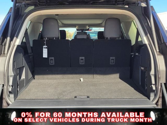 Driver's Package (Continuous Control Damping Suspension, Radio: B&O Unleashed Sound System by Bang & Olufsen, and SiriusXM w/360L), Equipment Group 600A Standard Package (2nd Row Power-Folding Captain's Chairs), 10 Speakers, 3.73 Axle Ratio, 3rd row seats: split-bench, 4-Wheel Disc Brakes, ABS brakes, Adjustable pedals, Air Conditioning, Alloy wheels, AM/FM radio: SiriusXM with 360L, Apple CarPlay/Android Auto, Auto High-beam Headlights, Auto-dimming door mirrors, Auto-dimming Rear-View mirror, Automatic temperature control, Brake assist, Bumpers: body-color, Compass, Delay-off headlights, Driver door bin, Driver vanity mirror, Dual front impact airbags, Dual front side impact airbags, Electronic Stability Control, Emergency communication system: 911 Assist, Exterior Parking Camera Rear, Four wheel independent suspension, Front anti-roll bar, Front Bucket Seats, Front Center Armrest, Front dual zone A/C, Front License Plate Bracket, Front reading lights, Fully automatic headlights, Garage door transmitter, Genuine wood dashboard insert, Genuine wood door panel insert, Heated & Ventilated Leather Front Captain's Chairs, Heated door mirrors, Heated front seats, Heated rear seats, Heated steering wheel, Illuminated entry, Leather steering wheel, Low tire pressure warning, Memory seat, Navigation System, Occupant sensing airbag, Outside temperature display, Overhead airbag, Overhead console, Panic alarm, Passenger door bin, Passenger vanity mirror, Pedal memory, Power door mirrors, Power driver seat, Power moonroof: Vista Roof, Power passenger seat, Power steering, Power windows, Radio data system, Radio: B&O Sound System by Bang & Olufsen, Rain sensing wipers, Rear air conditioning, Rear anti-roll bar, Rear reading lights, Rear window defroster, Rear window wiper, Reclining 3rd row seat, Remote keyless entry, Security system, Speed control, Speed-sensing steering, Speed-Sensitive Wipers, Split folding rear seat, Spoiler, Steering wheel memory, Steering wheel mounted audio controls, Tachometer, Telescoping steering wheel, Tilt steering wheel, Traction control, Trip computer, Turn signal indicator mirrors, Variably intermittent wipers, Ventilated front seats, Voltmeter, Wheels: 20" Ebony Bright Machined Aluminum, and Wheels: 22" Ebony Bright Machined Face Aluminum.
