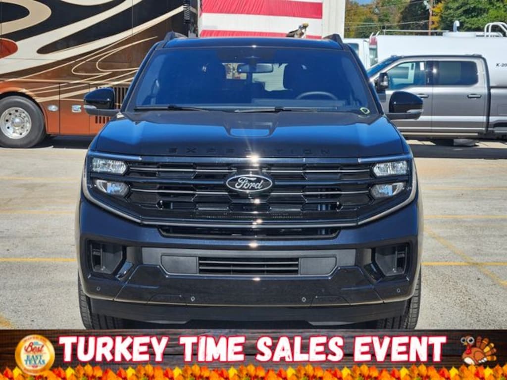 Stealth Appearance Package (Black Belt Molding, Black Expedition Lettering On Hood, Black Headlamp Bezel w/Ebony Trim Applique, Black Platinum Badge On Tailgate, Black Roof Rails, Carbon Black Front Bumper/Fascia, Engine Sound Enhancer, Rear Side Windows Laminated Glass, and Signature Grille Lighting), 4WD, 10 Speakers, 2nd Row Power-Folding Captain's Chairs, 3.73 Axle Ratio, 3rd row seats: split-bench, 4-Wheel Disc Brakes, ABS brakes, Adjustable pedals, Air Conditioning, Alloy wheels, AM/FM radio: SiriusXM with 360L, Apple CarPlay/Android Auto, Auto High-beam Headlights, Auto-dimming door mirrors, Auto-dimming Rear-View mirror, Automatic temperature control, Brake assist, Bumpers: body-color, Compass, Delay-off headlights, Driver door bin, Driver vanity mirror, Dual front impact airbags, Dual front side impact airbags, Electronic Stability Control, Emergency communication system: 911 Assist, Exterior Parking Camera Rear, Four wheel independent suspension, Front anti-roll bar, Front Bucket Seats, Front Center Armrest, Front dual zone A/C, Front reading lights, Fully automatic headlights, Garage door transmitter, Genuine wood dashboard insert, Genuine wood door panel insert, Heated & Ventilated Leather Front Captain's Chairs, Heated door mirrors, Heated front seats, Heated rear seats, Heated steering wheel, Illuminated entry, Leather steering wheel, Low tire pressure warning, Memory seat, Navigation System, Occupant sensing airbag, Outside temperature display, Overhead airbag, Overhead console, Panic alarm, Passenger door bin, Passenger vanity mirror, Pedal memory, Power door mirrors, Power driver seat, Power moonroof: Vista Roof, Power passenger seat, Power steering, Power windows, Radio data system, Radio: B&O Sound System by Bang & Olufsen, Rain sensing wipers, Rear air conditioning, Rear anti-roll bar, Rear reading lights, Rear window defroster, Rear window wiper, Reclining 3rd row seat, Remote keyless entry, Security system, SiriusXM w/360L, Speed control, Speed-sensing steering, Speed-Sensitive Wipers, Split folding rear seat, Spoiler, Steering wheel memory, Steering wheel mounted audio controls, Tachometer, Telescoping steering wheel, Tilt steering wheel, Traction control, Trip computer, Turn signal indicator mirrors, Variably intermittent wipers, Ventilated front seats, Voltmeter, and Wheels: 20" Ebony Bright Machined Aluminum.