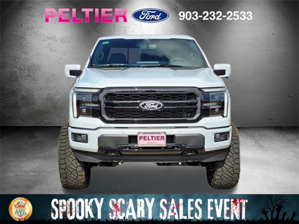 Bed Utility Package (4 Pickup Box Tie-Down Plates, LED Box Lighting, Power Tailgate, and Pro Access Tailgate), Equipment Group 502A High (Illuminated Driver & Passenger Visors, Power-Sliding Rear Window, and Wheels: 20" Chrome-Like PVD), FX4 Off-Road Package (4x4 FX4 Off-Road Bodyside Decal, Hill Descent Control, Rock Crawl Mode, and Tray Style Floor Liner w/o Carpet Mats), Lariat Black Appearance Package (ActiveX Seating Material Bucket Seats (B), Black Exterior Badging, Black Grille, Black Taillamp Bezels, Body-Color Front & Rear Bumpers, Body-Color Skull Caps & Door Handles, Dark Interior Appliques, Gray Box Side Decal, and Matte Black Tailgate F-150 Decal), Mobile Office Package (Partitioned Lockable Rear Storage and Wireless Charging), Tow/Haul Package, 4WD, 3.31 Axle Ratio, 4-Wheel Disc Brakes, 8 Speakers, ABS brakes, ActiveX Seating Material Bucket Seats, Adjustable pedals, Air Conditioning, Alloy wheels, AM/FM radio, Auto High-beam Headlights, Auto-dimming door mirrors, Auto-dimming Rear-View mirror, Automatic temperature control, Brake assist, Bumpers: chrome, Chrome wheels, Compass, Delay-off headlights, Driver door bin, Driver vanity mirror, Dual front impact airbags, Dual front side impact airbags, Electronic Locking w/3.55 Axle Ratio, Electronic Stability Control, Emergency communication system: SYNC 4 911 Assist, Front anti-roll bar, Front Bucket Seats, Front Center Armrest, Front dual zone A/C, Front fog lights, Front License Plate Bracket, Front reading lights, Front wheel independent suspension, Fully automatic headlights, Garage door transmitter, Heated door mirrors, Heated front seats, Heated steering wheel, Illuminated entry, Low tire pressure warning, Memory seat, Navigation system: Connected Navigation, Occupant sensing airbag, Outside temperature display, Overhead airbag, Overhead console, Panic alarm, Passenger door bin, Passenger vanity mirror, Pedal memory, Power door mirrors, Power driver seat, Power passenger seat, Power steering, Power windows, Radio data system, Radio: B&O Sound System by Bang & Olufsen, Rain sensing wipers, Rear reading lights, Rear seat center armrest, Rear step bumper, Rear window defroster, Remote keyless entry, Security system, Speed control, Split folding rear seat, Steering wheel mounted audio controls, SYNC 4 w/Enhanced Voice Recognition, Tachometer, Telescoping steering wheel, Tilt steering wheel, Traction control, Trip computer, Turn signal indicator mirrors, Twin Panel Moonroof, Variably intermittent wipers, Ventilated front seats, Voltmeter, and Wheels: 18" Chrome-Like PVD. Price includes: $500 - Retail Bonus Cash Price includes dealer added accessories.