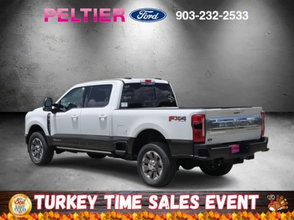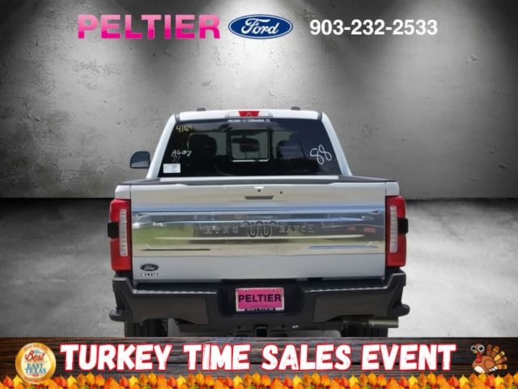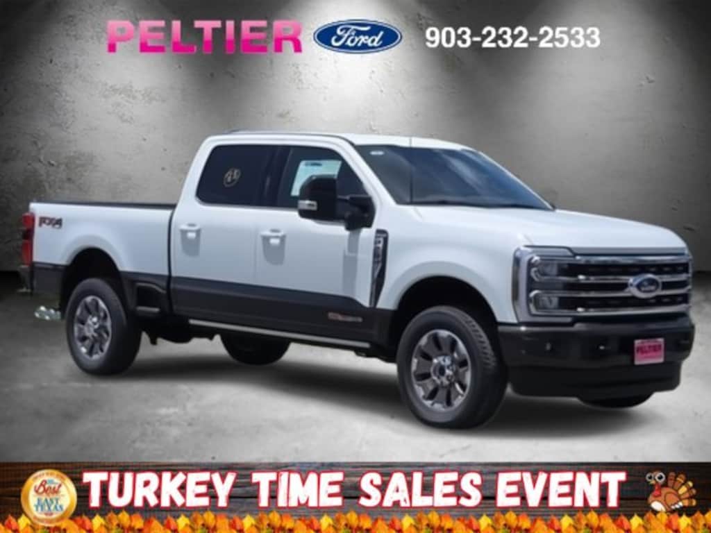 F-250 >10K GVWR Package, FX4 Off-Road Package (Hill Descent Control, Off-Road Specifically Tuned Shock Absorbers, and Unique FX4 Off-Road Box Decal), High Capacity 11.6" Axle Upgrade Package, Order Code 700A, 4WD, 14 Speakers, 4-Wheel Disc Brakes, 410 Amp Dual Alternators, ABS brakes, Adjustable pedals, Air Conditioning, Alloy wheels, AM/FM radio: SiriusXM with 360L, Auto High-beam Headlights, Auto tilt-away steering wheel, Auto-dimming Rear-View mirror, Automatic temperature control, Brake assist, Compass, Delay-off headlights, Driver door bin, Driver vanity mirror, Dual front impact airbags, Dual front side impact airbags, Electronic Stability Control, Emergency communication system: SYNC 4 911 Assist, Engine Block Heater, Flow-Through Console, Front anti-roll bar, Front Bucket Seats, Front Center Armrest, Front dual zone A/C, Front fog lights, Front License Plate Bracket, Front reading lights, Fully automatic headlights, Garage door transmitter, Heads-Up Display, Heated door mirrors, Heated front seats, Heated rear seats, Heated steering wheel, Illuminated entry, Leather steering wheel, Low tire pressure warning, Memory seat, Navigation System, Outside temperature display, Overhead airbag, Overhead console, Panic alarm, Passenger door bin, Passenger vanity mirror, Pedal memory, Power door mirrors, Power driver seat, Power passenger seat, Power steering, Power windows, Pro Power Onboard - 2kW, Radio: B&O Unleashed Sound System by Bang & Olufsen, Rain sensing wipers, Rear reading lights, Rear seat center armrest, Rear step bumper, Rear window defroster, Remote keyless entry, Security system, SiriusXM Radio w/360L, Speed control, Split folding rear seat, Steering wheel memory, Steering wheel mounted A/C controls, Steering wheel mounted audio controls, SYNC 4 w/Enhanced Voice Recognition, Tachometer, Telescoping steering wheel, Tilt steering wheel, Traction control, Trip computer, Turn signal indicator mirrors, Twin Panel Power Moonroof, Unique King Ranch Leather 40/Console/40 Seats, Upfitter Switches (6), Variably intermittent wipers, Ventilated front seats, and Wheels: 20" Bright Machined Cast Aluminum.
