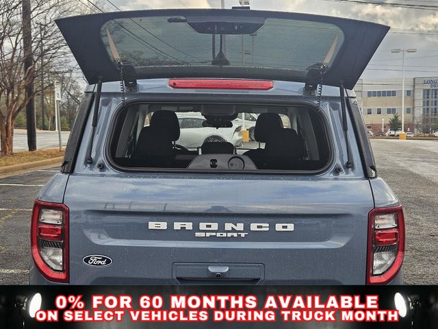 Convenience Package (Front Driver/Passenger Seat Back Map Pockets, Heated 8-Way Power Driver's Seat, LED Fog Lamps, and Premium Wrapped Steering Wheel), Equipment Group 200A Standard Package (AM/FM Stereo, Cloth with Easy-to-Clean Front Bucket Seats, SiriusXM with 360L, SYNC 4 with Enhanced Voice Recognition, and Wheels: 17" Carbonized Gray Painted Aluminum), Ford Connectivity Package (1-Year Included), Internet access capable: 5G Modem - Ford Connectivity Package, 4-Wheel Disc Brakes, 6 Speakers, ABS brakes, Air Conditioning, Alloy wheels, AM/FM radio: SiriusXM with 360L, Apple CarPlay/Android Auto, Auto High-beam Headlights, Automatic temperature control, Brake assist, Compass, Delay-off headlights, Driver door bin, Driver vanity mirror, Dual front impact airbags, Dual front side impact airbags, Electronic Stability Control, Emergency communication system: SYNC 4 911 Assist, Exterior Parking Camera Rear, Four wheel independent suspension, Front anti-roll bar, Front Bucket Seats, Front Center Armrest, Front License Plate Bracket, Front reading lights, Fully automatic headlights, Heated door mirrors, Illuminated entry, Knee airbag, Liftgate with Black BRONCO SPORT Lettering, Low tire pressure warning, Occupant sensing airbag, Outside temperature display, Overhead airbag, Overhead console, Panic alarm, Passenger door bin, Passenger vanity mirror, Power door mirrors, Power steering, Power windows, Radio data system, Rear anti-roll bar, Rear Parking Sensors, Rear reading lights, Rear seat center armrest, Rear window defroster, Rear window wiper, Remote keyless entry, Security system, Speed control, Speed-sensing steering, Speed-Sensitive Wipers, Split folding rear seat, Steering wheel mounted audio controls, Tachometer, Telescoping steering wheel, Tilt steering wheel, Traction control, Trip computer, and Variably intermittent wipers.