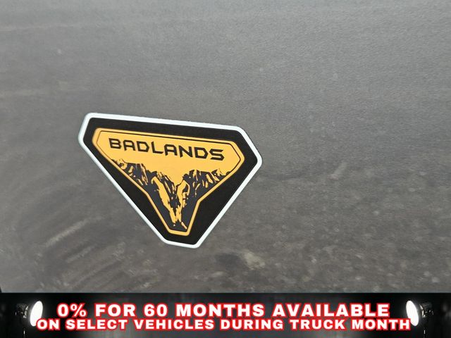 Badlands Tech Package (Connected Navigation (1-Year Included), Noise Reduction Module, and Radio: HD w/B&O Sound System by Bang & Olufsen), Equipment Group 400A Standard Package (AM/FM Stereo, Leather-Trimmed Heated Front Sport Contour Bucket Seats, SiriusXM with 360L, SYNC 4 with Enhanced Voice Recognition, and Wheels: 17" Matte Black-Painted Aluminum), Ford Connectivity Package (1-Year Included), Internet access capable: 5G Modem - Ford Connectivity Package, 4-Wheel Disc Brakes, 6 Speakers, ABS brakes, Air Conditioning, Alloy wheels, AM/FM radio: SiriusXM with 360L, Apple CarPlay/Android Auto, Auto High-beam Headlights, Auto-dimming Rear-View mirror, Automatic temperature control, Brake assist, Compass, Delay-off headlights, Driver door bin, Driver vanity mirror, Dual front impact airbags, Dual front side impact airbags, Electronic Stability Control, Emergency communication system: SYNC 4 911 Assist, Exterior Parking Camera Rear, Four wheel independent suspension, Front anti-roll bar, Front Bucket Seats, Front Center Armrest, Front fog lights, Front License Plate Bracket, Front reading lights, Fully automatic headlights, Heated door mirrors, Heated front seats, Heated steering wheel, Illuminated entry, Knee airbag, Low tire pressure warning, Memory seat, Occupant sensing airbag, Outside temperature display, Overhead airbag, Overhead console, Panic alarm, Passenger door bin, Passenger vanity mirror, Power door mirrors, Power driver seat, Power passenger seat, Power steering, Power windows, Radio data system, Rear anti-roll bar, Rear reading lights, Rear seat center armrest, Rear window defroster, Rear window wiper, Remote keyless entry, Security system, Speed control, Speed-sensing steering, Speed-Sensitive Wipers, Split folding rear seat, Steering wheel mounted audio controls, Tachometer, Telescoping steering wheel, Tilt steering wheel, Traction control, Trip computer, and Variably intermittent wipers.