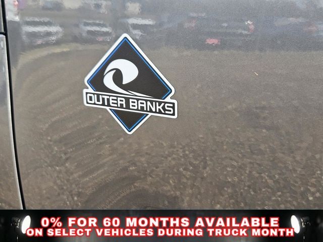 Equipment Group 300A Standard Package (AM/FM Stereo, Front Driver/Passenger Seat Back Map Pockets, SiriusXM with 360L, SYNC 4 with Enhanced Voice Recognition, and Wheels: 18" Ebony Black), Ford Connectivity Package (1-Year Included), Internet access capable: 5G Modem - Ford Connectivity Package, Outer Banks Tech Package+ (Connected Navigation (1-Year Included) and Radio: HD w/B&O Sound System by Bang & Olufsen), 360-Degree Camera with Trail View, 4-Wheel Disc Brakes, 6 Speakers, ABS brakes, Air Conditioning, Alloy wheels, AM/FM radio: SiriusXM with 360L, Apple CarPlay/Android Auto, Auto High-beam Headlights, Auto-dimming Rear-View mirror, Automatic temperature control, Brake assist, Compass, Delay-off headlights, Driver door bin, Driver vanity mirror, Dual front impact airbags, Dual front side impact airbags, Electronic Stability Control, Emergency communication system: SYNC 4 911 Assist, Exterior Parking Camera Rear, Four wheel independent suspension, Front anti-roll bar, Front Bucket Seats, Front Center Armrest, Front dual zone A/C, Front fog lights, Front License Plate Bracket, Front Parking Sensors, Front reading lights, Fully automatic headlights, Heated door mirrors, Heated front seats, Heated steering wheel, Illuminated entry, Knee airbag, Low tire pressure warning, Memory seat, Occupant sensing airbag, Outside temperature display, Overhead airbag, Overhead console, Panic alarm, Passenger door bin, Passenger vanity mirror, Power door mirrors, Power driver seat, Power passenger seat, Power steering, Power windows, Radio data system, Rear anti-roll bar, Rear Parking Sensors, Rear reading lights, Rear seat center armrest, Rear window defroster, Rear window wiper, Remote keyless entry, Reverse Brake Assist, Security system, Speed control, Speed-sensing steering, Speed-Sensitive Wipers, Split folding rear seat, Steering wheel mounted audio controls, Tachometer, Telescoping steering wheel, Tilt steering wheel, Traction control, Trip computer, and Variably intermittent wipers.