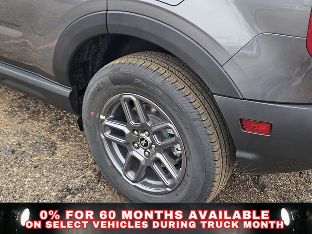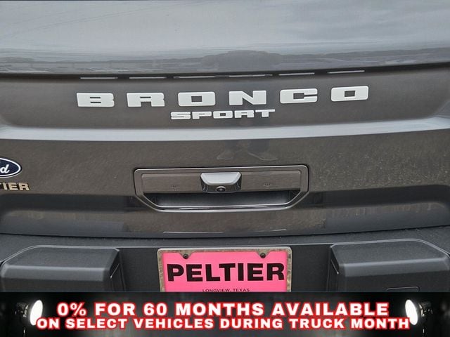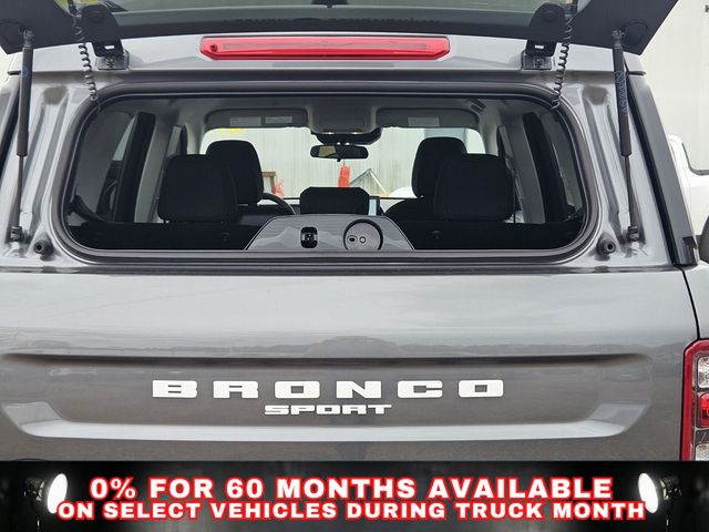 Convenience Package (Front Driver/Passenger Seat Back Map Pockets, Heated 8-Way Power Driver's Seat, LED Fog Lamps, and Premium Wrapped Steering Wheel), Equipment Group 200A Standard Package (AM/FM Stereo, Cloth with Easy-to-Clean Front Bucket Seats, SiriusXM with 360L, SYNC 4 with Enhanced Voice Recognition, and Wheels: 17" Carbonized Gray Painted Aluminum), Ford Connectivity Package (1-Year Included), Internet access capable: 5G Modem - Ford Connectivity Package, 4-Wheel Disc Brakes, 6 Speakers, ABS brakes, Air Conditioning, Alloy wheels, AM/FM radio: SiriusXM with 360L, Apple CarPlay/Android Auto, Auto High-beam Headlights, Automatic temperature control, Brake assist, Compass, Delay-off headlights, Driver door bin, Driver vanity mirror, Dual front impact airbags, Dual front side impact airbags, Electronic Stability Control, Emergency communication system: SYNC 4 911 Assist, Exterior Parking Camera Rear, Four wheel independent suspension, Front anti-roll bar, Front Bucket Seats, Front Center Armrest, Front License Plate Bracket, Front reading lights, Fully automatic headlights, Heated door mirrors, Illuminated entry, Knee airbag, Liftgate with Black BRONCO SPORT Lettering, Low tire pressure warning, Occupant sensing airbag, Outside temperature display, Overhead airbag, Overhead console, Panic alarm, Passenger door bin, Passenger vanity mirror, Power door mirrors, Power steering, Power windows, Radio data system, Rear anti-roll bar, Rear Parking Sensors, Rear reading lights, Rear seat center armrest, Rear window defroster, Rear window wiper, Remote keyless entry, Security system, Speed control, Speed-sensing steering, Speed-Sensitive Wipers, Split folding rear seat, Steering wheel mounted audio controls, Tachometer, Telescoping steering wheel, Tilt steering wheel, Traction control, Trip computer, and Variably intermittent wipers.