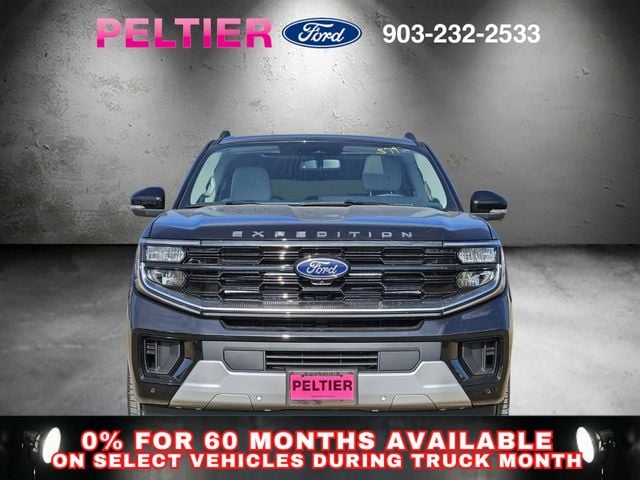 Driver's Package (Radio: B&O Play Unleashed and SiriusXM with 360L), Equipment Group 600A Standard Package (2nd Row Power-Folding Captain's Chairs, 3.73 Axle Ratio, BlueCruise Equipped (90-Day Trial), Ford Digital Experience, Heated and Ventilated Leather Front Captain's Chairs, Power Tilt/Telescopic Steering Wheel with Memory, Radio: B&O Sound System by Bang and Olufsen, and Wheels: 20" x 8.5" Ebony Bright Machined Aluminum), Ford Connectivity Package (1-Time Purchase), Ford Connectivity Package (1-Year Included), Platinum Ultimate Interior Package, Platinum Ultimate Package (Black Headlamp Bezel with Satin Trim Applique, Black Onyx Painted Power Deployable Running Boards, BlueCruise (equipment + 1-Year + 90-Day Plan), Carbon Black Front Bumper with Lit Grille Bar, Chrome Roof Rails with Black End Caps, Engine Sound Enhancer, Front Door Scuff Plates with Met Insert and Bright Rear, High Flow Exhaust System, Multicontour Active Motion Lthr Frnt Captains Chairs, Polished Stainless Steel Beltline Molding, Rear Seat Radio Controls, Rear Side Windows Laminated Glass, Satin Aluminum Expedition Lettering on Side and Hood, Satin Aluminum Platinum Badge on Tailgate, Signature Grille Lighting, and Wheels: 24" x 9.5" Tarnished Dark Metallic), 10 Speakers, 3rd row seats: split-bench, 4-Wheel Disc Brakes, ABS brakes, Air Conditioning, Alloy wheels, AM/FM radio: SiriusXM with 360L, Apple CarPlay/Android Auto, Auto High-beam Headlights, Auto-dimming door mirrors, Auto-dimming Rear-View mirror, Automatic temperature control, Brake assist, Bumpers: body-color, Compass, Delay-off headlights, Driver door bin, Driver vanity mirror, Dual front impact airbags, Dual front side impact airbags, Electronic Stability Control, Emergency communication system: 911 Assist, Exterior Parking Camera Rear, Four wheel independent suspension, Front anti-roll bar, Front Bucket Seats, Front Center Armrest, Front dual zone A/C, Front License Plate Bracket, Front reading lights, Fully automatic headlights, Garage door transmitter, Genuine wood dashboard insert, Genuine wood door panel insert, Heated door mirrors, Heated front seats, Heated rear seats, Heated steering wheel, Illuminated entry, Intersection Assist, Leather steering wheel, Low tire pressure warning, Memory seat, Navigation System, Occupant sensing airbag, Outside temperature display, Overhead airbag, Overhead console, Panic alarm, Passenger door bin, Passenger vanity mirror, Power door mirrors, Power driver seat, Power moonroof: Vista Roof, Power passenger seat, Power steering, Power windows, Radio data system, Rain sensing wipers, Rear air conditioning, Rear anti-roll bar, Rear reading lights, Rear window defroster, Rear window wiper, Reclining 3rd row seat, Remote keyless entry, Security system, Speed control, Speed-sensing steering, Speed-Sensitive Wipers, Split folding rear seat, Spoiler, Steering wheel memory, Steering wheel mounted audio controls, Tachometer, Telescoping steering wheel, Tilt steering wheel, Traction control, Trip computer, Turn signal indicator mirrors, Variably intermittent wipers, Ventilated front seats, Voltmeter, and Wheels: 22" x 9.0" Ebony Bright Machined Face Aluminum.