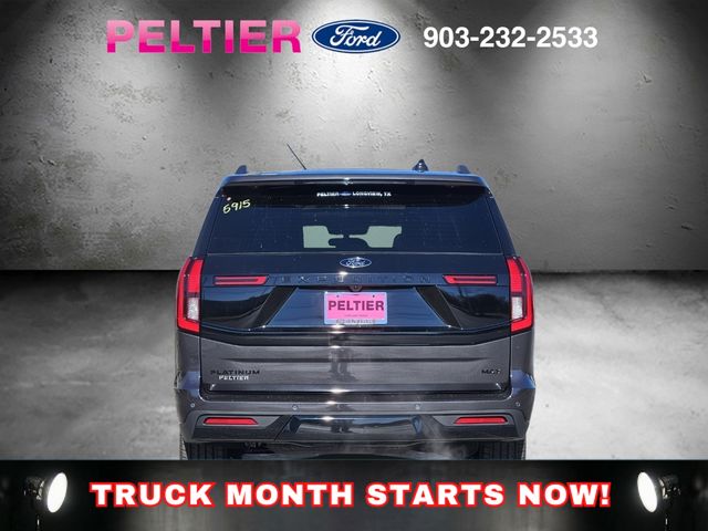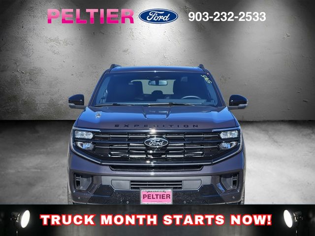 Equipment Group 600A Standard Package (2nd Row Power-Folding Captain's Chairs, 3.73 Axle Ratio, BlueCruise Equipped (90-Day Trial), Ford Digital Experience, Heated and Ventilated Leather Front Captain's Chairs, Power Tilt/Telescopic Steering Wheel with Memory, Radio: B&O Sound System by Bang and Olufsen, SiriusXM with 360L, and Wheels: 20" x 8.5" Ebony Bright Machined Aluminum), Ford Connectivity Package (1-Year Included), Stealth Appearance Package (Black Belt Molding, Black Expedition Lettering on Hood, Black Headlamp Bezel with Ebony Trim Applique, Black Platinum Badge on Tailgate, Black Roof Rails, Carbon Black Front Bumper/Fascia, Rear Side Windows Laminated Glass, and Signature Grille Lighting), 10 Speakers, 3rd row seats: split-bench, 4-Wheel Disc Brakes, ABS brakes, Air Conditioning, Alloy wheels, AM/FM radio: SiriusXM with 360L, Apple CarPlay/Android Auto, Auto High-beam Headlights, Auto-dimming door mirrors, Auto-dimming Rear-View mirror, Automatic temperature control, Brake assist, Bumpers: body-color, Compass, Delay-off headlights, Driver door bin, Driver vanity mirror, Dual front impact airbags, Dual front side impact airbags, Electronic Stability Control, Emergency communication system: 911 Assist, Exterior Parking Camera Rear, Four wheel independent suspension, Front anti-roll bar, Front Bucket Seats, Front Center Armrest, Front dual zone A/C, Front License Plate Bracket, Front reading lights, Fully automatic headlights, Garage door transmitter, Genuine wood dashboard insert, Genuine wood door panel insert, Heated door mirrors, Heated front seats, Heated rear seats, Heated steering wheel, Illuminated entry, Intersection Assist, Leather steering wheel, Low tire pressure warning, Memory seat, Navigation System, Occupant sensing airbag, Outside temperature display, Overhead airbag, Overhead console, Panic alarm, Passenger door bin, Passenger vanity mirror, Power door mirrors, Power driver seat, Power moonroof: Vista Roof, Power passenger seat, Power steering, Power windows, Radio data system, Rain sensing wipers, Rear air conditioning, Rear anti-roll bar, Rear reading lights, Rear window defroster, Rear window wiper, Reclining 3rd row seat, Remote keyless entry, Security system, Speed control, Speed-sensing steering, Speed-Sensitive Wipers, Split folding rear seat, Spoiler, Steering wheel memory, Steering wheel mounted audio controls, Tachometer, Telescoping steering wheel, Tilt steering wheel, Traction control, Trip computer, Turn signal indicator mirrors, Variably intermittent wipers, Ventilated front seats, and Voltmeter.