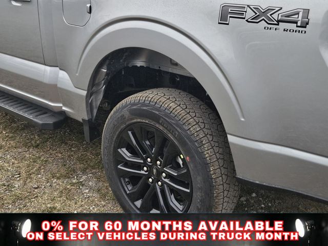 Equipment Group 302A Mid (18" Painted Aluminum Wheels, 360 Degree Camera, 400W Pro Power Onboard (cab & Bed), Adaptive Cruise Control with Stop and Go, Auto-Dimming Rear-View Mirror, Body-Color Door Handles, Cloth 40/20/40 Front Seat, Dual-Zone Electronic Automatic Temperature Control, Ford Co-Pilot360 Assist 2.0, Front Parking Sensors, Heated Front Seats, Intelligent Access with Push Button Start, Power Glass Heated Sideview Mirrors, Power-Sliding Rear Window, Radio: AM/FM Stereo with SiriusXM 360L, Remote Start System with Remote Tailgate Release, SYNC 4 with Enhanced Voice Recognition, Towing Technology, and Wrapped Steering Wheel), Ford Connectivity Package (1-Year Included), FX4 Off-Road Package, Internet access capable: 5G Modem - Ford Connectivity Package, XLT Black Appearance Package Plus (6" Black Running Boards, Black Exterior Badging, Black Grille, Body-Color Front and Rear Bumpers, Dark Interior Appliques, Dual Exhaust with Black Tips, Gray Box Side Decal, and Wheels: 20" Gloss Black Painted Aluminum), 4WD, 4-Wheel Disc Brakes, 6 Speakers, ABS brakes, Air Conditioning, Alloy wheels, AM/FM radio: SiriusXM with 360L, Auto High-beam Headlights, Brake assist, Bumpers: body-color, Compass, Delay-off headlights, Driver door bin, Driver vanity mirror, Dual front impact airbags, Dual front side impact airbags, Electronic Stability Control, Emergency communication system: SYNC 4 911 Assist, Front anti-roll bar, Front Center Armrest, Front fog lights, Front License Plate Bracket, Front reading lights, Front wheel independent suspension, Fully automatic headlights, Heated door mirrors, Illuminated entry, Low tire pressure warning, Occupant sensing airbag, Outside temperature display, Overhead airbag, Overhead console, Panic alarm, Passenger door bin, Passenger vanity mirror, Power door mirrors, Power steering, Power windows, Radio data system, Rear Parking Sensors, Rear reading lights, Rear step bumper, Rear window defroster, Remote keyless entry, Security system, Speed control, Split folding rear seat, Steering wheel mounted audio controls, Tachometer, Telescoping steering wheel, Tilt steering wheel, Traction control, Trip computer, and Variably intermittent wipers.