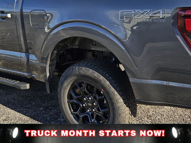 Equipment Group 302A Mid (18" Painted Aluminum Wheels, 360 Degree Camera, 400W Pro Power Onboard (cab & Bed), Adaptive Cruise Control with Stop and Go, AEB Oncoming, Auto-Dimming Rear-View Mirror, Body-Color Door Handles, Cloth 40/20/40 Front Seat, Dual-Zone Electronic Automatic Temperature Control, Ford Co-Pilot360 Assist 2.0, Front Parking Sensors, Heated Front Seats, Intelligent Access with Push Button Start, Power Glass Heated Sideview Mirrors, Power-Sliding Rear Window, Radio: AM/FM Stereo with SiriusXM 360L, Remote Start System with Remote Tailgate Release, SYNC 4 with Enhanced Voice Recognition, Towing Technology, and Wrapped Steering Wheel), Ford Connectivity Package (1-Year Included), FX4 Off-Road Package, Internet access capable: 5G Modem - Ford Connectivity Package, XLT Black Appearance Package, 4WD, 4-Wheel Disc Brakes, 6 Speakers, ABS brakes, Air Conditioning, Alloy wheels, AM/FM radio: SiriusXM with 360L, Auto High-beam Headlights, Brake assist, Bumpers: body-color, Compass, Delay-off headlights, Driver door bin, Driver vanity mirror, Dual front impact airbags, Dual front side impact airbags, Electronic Stability Control, Emergency communication system: SYNC 4 911 Assist, Front anti-roll bar, Front Center Armrest, Front fog lights, Front License Plate Bracket, Front reading lights, Front wheel independent suspension, Fully automatic headlights, Heated door mirrors, Illuminated entry, Low tire pressure warning, Occupant sensing airbag, Outside temperature display, Overhead airbag, Overhead console, Panic alarm, Passenger door bin, Passenger vanity mirror, Power door mirrors, Power steering, Power windows, Radio data system, Rear Parking Sensors, Rear reading lights, Rear step bumper, Rear window defroster, Remote keyless entry, Security system, Speed control, Split folding rear seat, Steering wheel mounted audio controls, Tachometer, Telescoping steering wheel, Tilt steering wheel, Traction control, Trip computer, and Variably intermittent wipers.