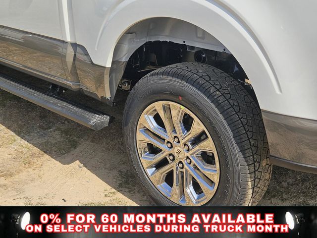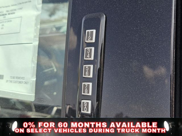 Equipment Group 601A High (Electronic Locking with 3.55 Axle Ratio, King Ranch Multicontour Leather Bucket Seats, Power-Deployable Running Boards, Radio: B&O Unleashed Sound System by Bang & Olufsen, and Wheels: 20" Chrome-Like PVD), Ford Connectivity Package (1-Year Included), FX4 Off-Road Package (4x4 FX4 Off-Road Bodyside Decal, Hill Descent Control, Monotube Rear Shocks, and Off-Road Tuned Front Shock Absorbers), GVWR: 7,400 lbs Payload Package, Internet access capable: 5G Modem - Ford Connectivity Package, 4WD, 4-Wheel Disc Brakes, 8 Speakers, ABS brakes, Adjustable pedals, Air Conditioning, Alloy wheels, AM/FM radio: SiriusXM with 360L, Auto High-beam Headlights, Auto tilt-away steering wheel, Auto-dimming door mirrors, Auto-dimming Rear-View mirror, Automatic temperature control, Brake assist, Chrome wheels, Compass, Delay-off headlights, Driver door bin, Driver vanity mirror, Driver's Side SecuriCode Keyless-Entry Keypad, Dual front impact airbags, Dual front side impact airbags, Electronic Stability Control, Emergency communication system: SYNC 4 911 Assist, Front anti-roll bar, Front Bucket Seats, Front Center Armrest, Front dual zone A/C, Front fog lights, Front reading lights, Front wheel independent suspension, Fully automatic headlights, Garage door transmitter, Genuine wood dashboard insert, Head-Up Display, Heated door mirrors, Heated front seats, Heated rear seats, Heated steering wheel, Illuminated entry, Leather steering wheel, Low tire pressure warning, Memory seat, Navigation system: Connected Navigation, Occupant sensing airbag, Outside temperature display, Overhead airbag, Overhead console, Panic alarm, Passenger door bin, Passenger vanity mirror, Pedal memory, Power door mirrors, Power driver seat, Power passenger seat, Power steering, Power windows, Pro Power Onboard - 2KW, Radio data system, Radio: B&O Sound System by Bang and Olufsen, Rain sensing wipers, Rear reading lights, Rear seat center armrest, Rear step bumper, Rear window defroster, Remote keyless entry, Security system, Speed control, Split folding rear seat, Steering wheel memory, Steering wheel mounted audio controls, SYNC 4 with Enhanced Voice Recognition, Tachometer, Telescoping steering wheel, Tilt steering wheel, Traction control, Trip computer, Turn signal indicator mirrors, Twin Panel Moonroof, Variably intermittent wipers, and Ventilated front seats.