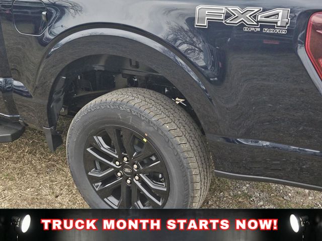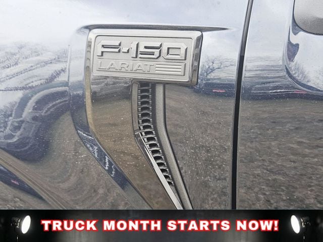 Equipment Group 501A Mid (6" Angular Bright Anodized Step Bar, ActiveX Trimmed Bucket Seats, Illuminated Driver and Passenger Visors, Power-Adjustable Pedals with Memory, Power-Sliding Rear Window, Radio: B&O Sound System by Bang and Olufsen, SYNC 4 with Enhanced Voice Recognition, and Wheels: 20" Chrome-Like PVD), Ford Connectivity Package (1-Year Included), FX4 Off-Road Package (4x4 FX4 Off-Road Bodyside Decal, Hill Descent Control, Monotube Rear Shocks, Off-Road Tuned Front Shock Absorbers, Rock Crawl Mode, and Tray Style Floor Liner Without Carpet Mats), Internet access capable: 5G Modem - Ford Connectivity Package, Lariat Black Appearance Package (Black Exterior Badging, Black Grille, Black Taillamp Bezels, Body-Color Front and Rear Bumpers, Dark Interior Appliques, Gray Box Side Decal, and Matte Black Tailgate F-150 Decal), 4WD, 4-Wheel Disc Brakes, 8 Speakers, ABS brakes, Air Conditioning, Alloy wheels, AM/FM radio: SiriusXM with 360L, Auto High-beam Headlights, Auto-dimming door mirrors, Auto-dimming Rear-View mirror, Automatic temperature control, Brake assist, Bumpers: chrome, Chrome wheels, Compass, Delay-off headlights, Driver door bin, Driver vanity mirror, Driver's Side SecuriCode Keyless-Entry Keypad, Dual front impact airbags, Dual front side impact airbags, Electronic Stability Control, Emergency communication system: SYNC 4 911 Assist, Front anti-roll bar, Front Bucket Seats, Front Center Armrest, Front dual zone A/C, Front fog lights, Front reading lights, Front wheel independent suspension, Fully automatic headlights, Garage door transmitter, Heated door mirrors, Heated front seats, Heated steering wheel, Illuminated entry, Low tire pressure warning, Memory seat, Navigation system: Connected Navigation, Occupant sensing airbag, Outside temperature display, Overhead airbag, Overhead console, Panic alarm, Passenger door bin, Passenger vanity mirror, Power door mirrors, Power driver seat, Power passenger seat, Power steering, Power windows, Radio data system, Rain sensing wipers, Rear reading lights, Rear seat center armrest, Rear step bumper, Rear window defroster, Remote keyless entry, Security system, Speed control, Split folding rear seat, Steering wheel mounted audio controls, Tachometer, Telescoping steering wheel, Tilt steering wheel, Traction control, Trip computer, Turn signal indicator mirrors, Variably intermittent wipers, Ventilated front seats, and Wheels: 18" Chrome-Like PVD.