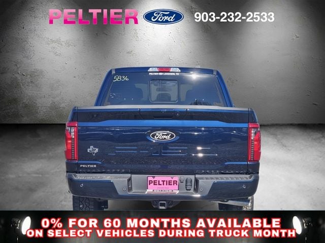 Equipment Group 302A Mid (18" Painted Aluminum Wheels, 360 Degree Camera, 400W Pro Power Onboard (cab & Bed), Adaptive Cruise Control with Stop and Go, AEB Oncoming, Auto-Dimming Rear-View Mirror, Body-Color Door Handles, Chrome Front and Rear Bumpers, Cloth 40/20/40 Front Seat, Dual-Zone Electronic Automatic Temperature Control, Ford Co-Pilot360 Assist 2.0, Front Parking Sensors, Heated Front Seats, Intelligent Access with Push Button Start, Power Glass Heated Sideview Mirrors, Power-Sliding Rear Window, Radio: AM/FM Stereo with SiriusXM 360L, Remote Start System with Remote Tailgate Release, SYNC 4 with Enhanced Voice Recognition, Towing Technology, and Wrapped Steering Wheel), Ford Connectivity Package (1-Year Included), FX4 Off-Road Package, Internet access capable: 5G Modem - Ford Connectivity Package, XLT Black Appearance Package, 4WD, 4-Wheel Disc Brakes, 6 Speakers, ABS brakes, Air Conditioning, Alloy wheels, AM/FM radio: SiriusXM with 360L, Auto High-beam Headlights, Brake assist, Bumpers: body-color, Compass, Delay-off headlights, Driver door bin, Driver vanity mirror, Dual front impact airbags, Dual front side impact airbags, Electronic Stability Control, Emergency communication system: SYNC 4 911 Assist, Front anti-roll bar, Front Center Armrest, Front fog lights, Front License Plate Bracket, Front reading lights, Front wheel independent suspension, Fully automatic headlights, Heated door mirrors, Illuminated entry, Low tire pressure warning, Occupant sensing airbag, Outside temperature display, Overhead airbag, Overhead console, Panic alarm, Passenger door bin, Passenger vanity mirror, Power door mirrors, Power steering, Power windows, Radio data system, Rear Parking Sensors, Rear reading lights, Rear step bumper, Rear window defroster, Remote keyless entry, Security system, Speed control, Split folding rear seat, Steering wheel mounted audio controls, Tachometer, Telescoping steering wheel, Tilt steering wheel, Traction control, Trip computer, and Variably intermittent wipers. Price includes: $1000 - Retail Bonus Cash $2000 - Retail Customer Cash