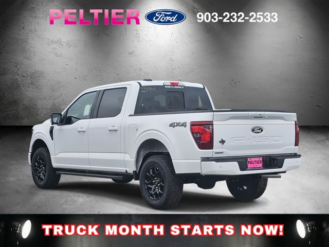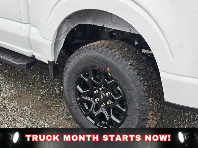 Equipment Group 302A Mid (18" Painted Aluminum Wheels, 360 Degree Camera, 400W Pro Power Onboard (cab & Bed), Adaptive Cruise Control with Stop and Go, AEB Oncoming, Auto-Dimming Rear-View Mirror, Body-Color Door Handles, Chrome Front and Rear Bumpers, Cloth 40/20/40 Front Seat, Dual-Zone Electronic Automatic Temperature Control, Ford Co-Pilot360 Assist 2.0, Front Parking Sensors, Heated Front Seats, Intelligent Access with Push Button Start, Power Glass Heated Sideview Mirrors, Power-Sliding Rear Window, Radio: AM/FM Stereo with SiriusXM 360L, Remote Start System with Remote Tailgate Release, SYNC 4 with Enhanced Voice Recognition, Towing Technology, and Wrapped Steering Wheel), Ford Connectivity Package (1-Year Included), Internet access capable: 5G Modem - Ford Connectivity Package, XLT Black Appearance Package, 4WD, 4-Wheel Disc Brakes, 6 Speakers, ABS brakes, Air Conditioning, Alloy wheels, AM/FM radio: SiriusXM with 360L, Auto High-beam Headlights, Brake assist, Bumpers: body-color, Compass, Delay-off headlights, Driver door bin, Driver vanity mirror, Dual front impact airbags, Dual front side impact airbags, Electronic Stability Control, Emergency communication system: SYNC 4 911 Assist, Front anti-roll bar, Front Center Armrest, Front fog lights, Front reading lights, Front wheel independent suspension, Fully automatic headlights, Heated door mirrors, Illuminated entry, Low tire pressure warning, Occupant sensing airbag, Outside temperature display, Overhead airbag, Overhead console, Panic alarm, Passenger door bin, Passenger vanity mirror, Power door mirrors, Power steering, Power windows, Radio data system, Rear Parking Sensors, Rear reading lights, Rear step bumper, Rear window defroster, Remote keyless entry, Security system, Speed control, Split folding rear seat, Steering wheel mounted audio controls, Tachometer, Telescoping steering wheel, Tilt steering wheel, Traction control, Trip computer, and Variably intermittent wipers.