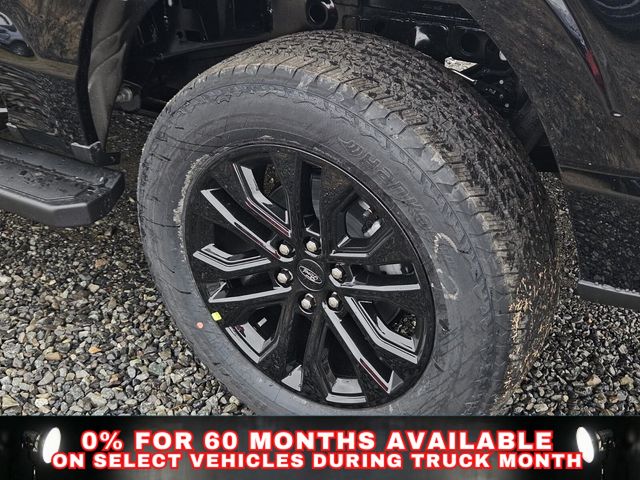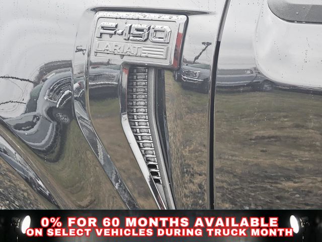 Equipment Group 502A High (2nd Row Heated Seats, ActiveX Trimmed Bucket Seats, Ambient Lighting - Ice Blue Color Only, Head-Up Display, Illuminated Driver and Passenger Visors, Power-Adjustable Pedals with Memory, Power-Sliding Rear Window, Radio: B&O Unleashed Sound System by Bang & Olufsen, and Wheels: 20" Chrome-Like PVD), Ford Connectivity Package (1-Year Included), FX4 Off-Road Package (4x4 FX4 Off-Road Bodyside Decal, Hill Descent Control, Monotube Rear Shocks, Off-Road Tuned Front Shock Absorbers, Rock Crawl Mode, and Tray Style Floor Liner Without Carpet Mats), Internet access capable: 5G Modem - Ford Connectivity Package, Lariat Black Appearance Package (Black Exterior Badging, Black Grille, Black Taillamp Bezels, Body-Color Front and Rear Bumpers, Dark Interior Appliques, Gray Box Side Decal, and Matte Black Tailgate F-150 Decal), Mobile Office Package (Console Worksurface, Partitioned Lockable Rear Storage, and Wireless Charging), 4WD, 4-Wheel Disc Brakes, 8 Speakers, ABS brakes, Air Conditioning, Alloy wheels, AM/FM radio: SiriusXM with 360L, Auto High-beam Headlights, Auto-dimming door mirrors, Auto-dimming Rear-View mirror, Automatic temperature control, Brake assist, Bumpers: chrome, Chrome wheels, Compass, Delay-off headlights, Driver door bin, Driver vanity mirror, Driver's Side SecuriCode Keyless-Entry Keypad, Dual front impact airbags, Dual front side impact airbags, Electronic Stability Control, Emergency communication system: SYNC 4 911 Assist, Front anti-roll bar, Front Bucket Seats, Front Center Armrest, Front dual zone A/C, Front fog lights, Front License Plate Bracket, Front reading lights, Front wheel independent suspension, Fully automatic headlights, Garage door transmitter, Heated door mirrors, Heated front seats, Heated steering wheel, Illuminated entry, Low tire pressure warning, Memory seat, Navigation system: Connected Navigation, Occupant sensing airbag, Outside temperature display, Overhead airbag, Overhead console, Panic alarm, Passenger door bin, Passenger vanity mirror, Power door mirrors, Power driver seat, Power passenger seat, Power steering, Power windows, Radio data system, Radio: B&O Sound System by Bang and Olufsen, Rain sensing wipers, Rear reading lights, Rear seat center armrest, Rear step bumper, Rear window defroster, Remote keyless entry, Security system, Speed control, Split folding rear seat, Steering wheel mounted audio controls, SYNC 4 with Enhanced Voice Recognition, Tachometer, Telescoping steering wheel, Tilt steering wheel, Traction control, Trip computer, Turn signal indicator mirrors, Twin Panel Moonroof, Variably intermittent wipers, Ventilated front seats, and Wheels: 18" Chrome-Like PVD.