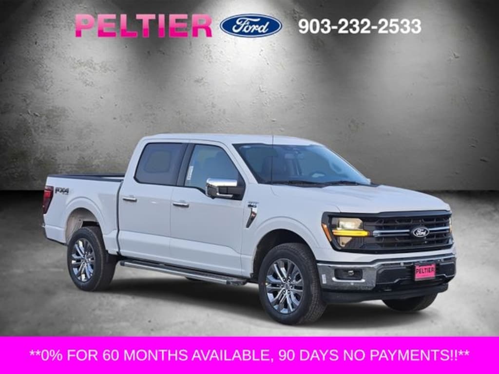 Equipment Group 302A Mid (18" Painted Aluminum Wheels, 360 Degree Camera, 400W Pro Power Onboard (cab & Bed), Adaptive Cruise Control with Stop and Go, AEB Oncoming, Auto-Dimming Rear-View Mirror, Black Platform Running Boards, Body-Color Door Handles, Cloth 40/20/40 Front Seat, Dual-Zone Electronic Automatic Temperature Control, Ford Co-Pilot360 Assist 2.0, Front Parking Sensors, Heated Front Seats, Intelligent Access with Push Button Start, Power Glass Heated Sideview Mirrors, Power-Sliding Rear Window, Radio: AM/FM Stereo with SiriusXM 360L, Remote Start System with Remote Tailgate Release, SYNC 4 with Enhanced Voice Recognition, Towing Technology, and Wrapped Steering Wheel), Ford Connectivity Package (1-Year Included), FX4 Off-Road Package, Internet access capable: 5G Modem - Ford Connectivity Package, XLT Chrome Appearance Package, 4WD, 4-Wheel Disc Brakes, 6 Speakers, ABS brakes, Air Conditioning, Alloy wheels, AM/FM radio: SiriusXM with 360L, Auto High-beam Headlights, Brake assist, Bumpers: body-color, Compass, Delay-off headlights, Driver door bin, Driver vanity mirror, Dual front impact airbags, Dual front side impact airbags, Electronic Stability Control, Emergency communication system: SYNC 4 911 Assist, Front anti-roll bar, Front Center Armrest, Front fog lights, Front License Plate Bracket, Front reading lights, Front wheel independent suspension, Fully automatic headlights, Heated door mirrors, Illuminated entry, Low tire pressure warning, Occupant sensing airbag, Outside temperature display, Overhead airbag, Overhead console, Panic alarm, Passenger door bin, Passenger vanity mirror, Power door mirrors, Power steering, Power windows, Radio data system, Rear Parking Sensors, Rear reading lights, Rear step bumper, Rear window defroster, Remote keyless entry, Security system, Speed control, Split folding rear seat, Steering wheel mounted audio controls, Tachometer, Telescoping steering wheel, Tilt steering wheel, Traction control, Trip computer, and Variably intermittent wipers.