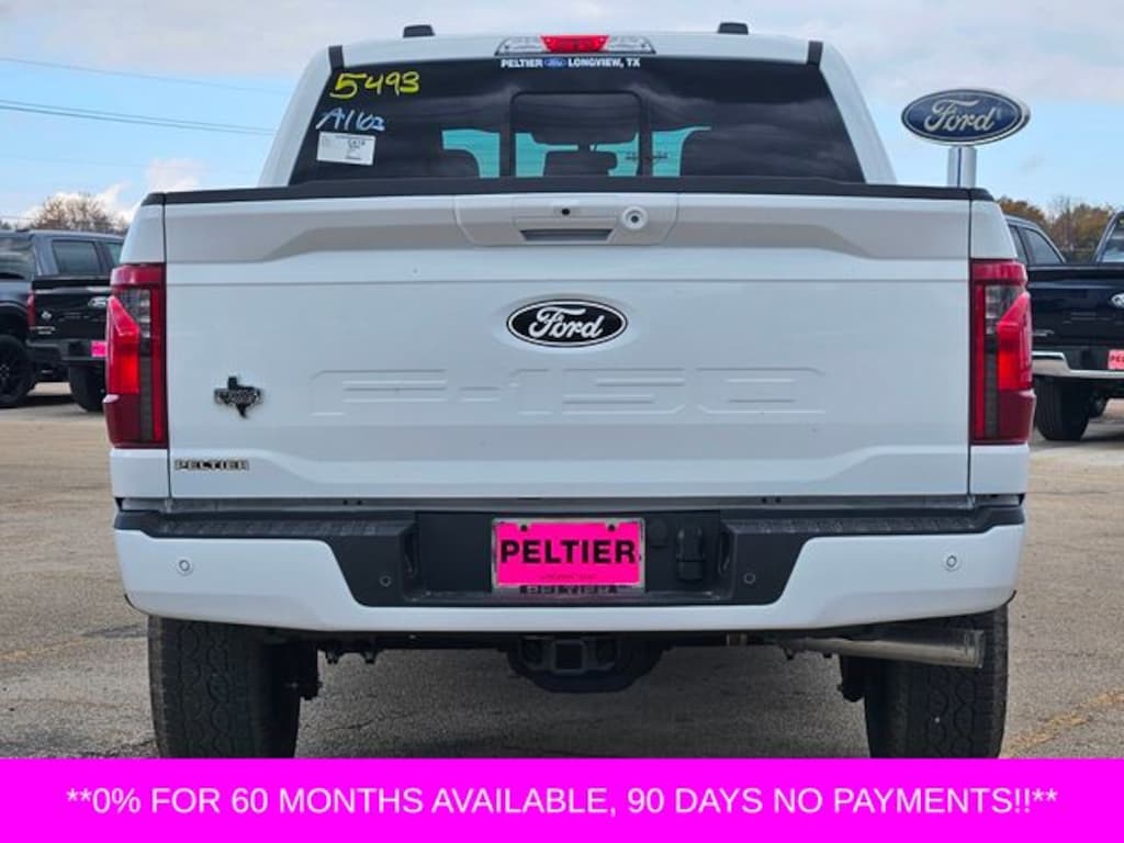 Equipment Group 302A Mid (18" Painted Aluminum Wheels, 360 Degree Camera, 400W Pro Power Onboard (cab & Bed), Adaptive Cruise Control with Stop and Go, AEB Oncoming, Auto-Dimming Rear-View Mirror, Black Platform Running Boards, Body-Color Door Handles, Cloth 40/20/40 Front Seat, Dual-Zone Electronic Automatic Temperature Control, Ford Co-Pilot360 Assist 2.0, Front Parking Sensors, Heated Front Seats, Intelligent Access with Push Button Start, Power Glass Heated Sideview Mirrors, Power-Sliding Rear Window, Radio: AM/FM Stereo with SiriusXM 360L, Remote Start System with Remote Tailgate Release, SYNC 4 with Enhanced Voice Recognition, Towing Technology, and Wrapped Steering Wheel), Ford Connectivity Package (1-Year Included), Internet access capable: 5G Modem - Ford Connectivity Package, XLT Black Appearance Package, 4WD, 4-Wheel Disc Brakes, 6 Speakers, ABS brakes, Air Conditioning, Alloy wheels, AM/FM radio: SiriusXM with 360L, Auto High-beam Headlights, Brake assist, Bumpers: body-color, Compass, Delay-off headlights, Driver door bin, Driver vanity mirror, Dual front impact airbags, Dual front side impact airbags, Electronic Stability Control, Emergency communication system: SYNC 4 911 Assist, Front anti-roll bar, Front Center Armrest, Front fog lights, Front License Plate Bracket, Front reading lights, Front wheel independent suspension, Fully automatic headlights, Heated door mirrors, Illuminated entry, Low tire pressure warning, Occupant sensing airbag, Outside temperature display, Overhead airbag, Overhead console, Panic alarm, Passenger door bin, Passenger vanity mirror, Power door mirrors, Power steering, Power windows, Radio data system, Rear Parking Sensors, Rear reading lights, Rear step bumper, Rear window defroster, Remote keyless entry, Security system, Speed control, Split folding rear seat, Steering wheel mounted audio controls, Tachometer, Telescoping steering wheel, Tilt steering wheel, Traction control, Trip computer, and Variably intermittent wipers.