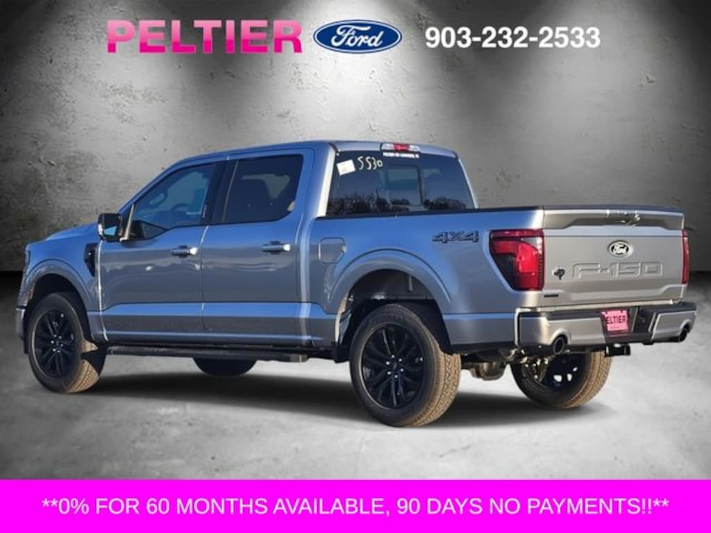 Equipment Group 302A Mid (18" Painted Aluminum Wheels, 360 Degree Camera, 400W Pro Power Onboard (cab & Bed), Adaptive Cruise Control with Stop and Go, AEB Oncoming, Auto-Dimming Rear-View Mirror, Black Platform Running Boards, Body-Color Door Handles, Cloth 40/20/40 Front Seat, Dual-Zone Electronic Automatic Temperature Control, Ford Co-Pilot360 Assist 2.0, Front Parking Sensors, Heated Front Seats, Intelligent Access with Push Button Start, Power Glass Heated Sideview Mirrors, Power-Sliding Rear Window, Radio: AM/FM Stereo with SiriusXM 360L, Remote Start System with Remote Tailgate Release, SYNC 4 with Enhanced Voice Recognition, Towing Technology, and Wrapped Steering Wheel), Ford Connectivity Package (1-Year Included), Internet access capable: 5G Modem - Ford Connectivity Package, XLT Black Appearance Package Plus (6" Black Running Boards, Black Exterior Badging, Black Grille, Body-Color Front and Rear Bumpers, Dark Interior Appliques, Dual Exhaust with Black Tips, Floor Shifter, Gray Box Side Decal, and Wheels: 20" Gloss Black Painted Aluminum), 4WD, 4-Wheel Disc Brakes, 6 Speakers, ABS brakes, Air Conditioning, Alloy wheels, AM/FM radio: SiriusXM with 360L, Auto High-beam Headlights, Brake assist, Bumpers: body-color, Compass, Delay-off headlights, Driver door bin, Driver vanity mirror, Dual front impact airbags, Dual front side impact airbags, Electronic Stability Control, Emergency communication system: SYNC 4 911 Assist, Front anti-roll bar, Front Center Armrest, Front fog lights, Front License Plate Bracket, Front reading lights, Front wheel independent suspension, Fully automatic headlights, Heated door mirrors, Illuminated entry, Low tire pressure warning, Occupant sensing airbag, Outside temperature display, Overhead airbag, Overhead console, Panic alarm, Passenger door bin, Passenger vanity mirror, Power door mirrors, Power steering, Power windows, Radio data system, Rear Parking Sensors, Rear reading lights, Rear step bumper, Rear window defroster, Remote keyless entry, Security system, Speed control, Split folding rear seat, Steering wheel mounted audio controls, Tachometer, Telescoping steering wheel, Tilt steering wheel, Traction control, Trip computer, and Variably intermittent wipers.
