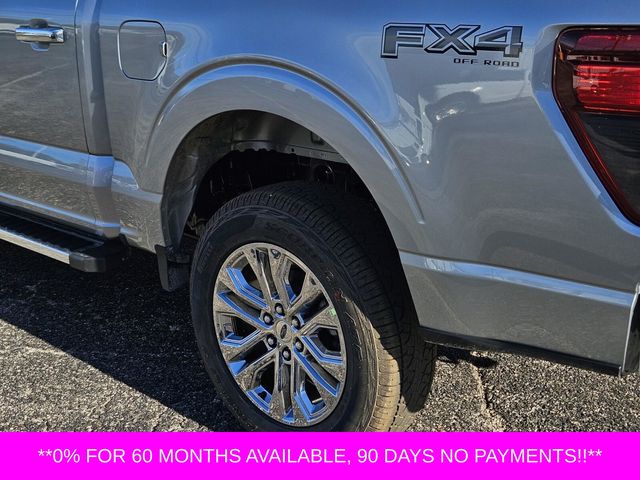 Equipment Group 302A Mid (18" Painted Aluminum Wheels, 3.55 Axle Ratio, 360 Degree Camera, 400W Pro Power Onboard (cab & Bed), Adaptive Cruise Control with Stop and Go, AEB Oncoming, Auto-Dimming Rear-View Mirror, Body-Color Door Handles, Chrome Front and Rear Bumpers, Cloth 40/20/40 Front Seat, Dual-Zone Electronic Automatic Temperature Control, Ford Co-Pilot360 Assist 2.0, Front Parking Sensors, Heated Front Seats, Intelligent Access with Push Button Start, Power Glass Heated Sideview Mirrors, Power-Sliding Rear Window, Radio: AM/FM Stereo with SiriusXM 360L, Remote Start System with Remote Tailgate Release, SYNC 4 with Enhanced Voice Recognition, Towing Technology, and Wrapped Steering Wheel), Ford Connectivity Package (1-Year Included), FX4 Off-Road Package (4x4 FX4 Off-Road Bodyside Decal, Hill Descent Control, Monotube Rear Shocks, Off-Road Tuned Front Shock Absorbers, Rock Crawl Mode, and Tray Style Floor Liner Without Carpet Mats), GVWR: 6,650 lbs Payload Package, Internet access capable: 5G Modem - Ford Connectivity Package, XLT Chrome Appearance Package (6" Angular Bright Anodized Step Bar, Black Painted Mesh Grille with Chrome Center Bar, Chrome Door Handles, Chrome Single-Tip Exhaust, and Wheels: 20" Chrome-Like PVD), 4WD, 4-Wheel Disc Brakes, 6 Speakers, ABS brakes, Air Conditioning, Alloy wheels, AM/FM radio: SiriusXM with 360L, Auto High-beam Headlights, Brake assist, Bumpers: body-color, Compass, Delay-off headlights, Driver door bin, Driver vanity mirror, Dual front impact airbags, Dual front side impact airbags, Electronic Stability Control, Emergency communication system: SYNC 4 911 Assist, Front anti-roll bar, Front Center Armrest, Front fog lights, Front reading lights, Front wheel independent suspension, Fully automatic headlights, Heated door mirrors, Illuminated entry, Low tire pressure warning, Occupant sensing airbag, Outside temperature display, Overhead airbag, Overhead console, Panic alarm, Passenger door bin, Passenger vanity mirror, Power door mirrors, Power steering, Power windows, Radio data system, Rear Parking Sensors, Rear reading lights, Rear step bumper, Rear window defroster, Remote keyless entry, Security system, Speed control, Split folding rear seat, Steering wheel mounted audio controls, Tachometer, Telescoping steering wheel, Tilt steering wheel, Traction control, Trip computer, and Variably intermittent wipers.