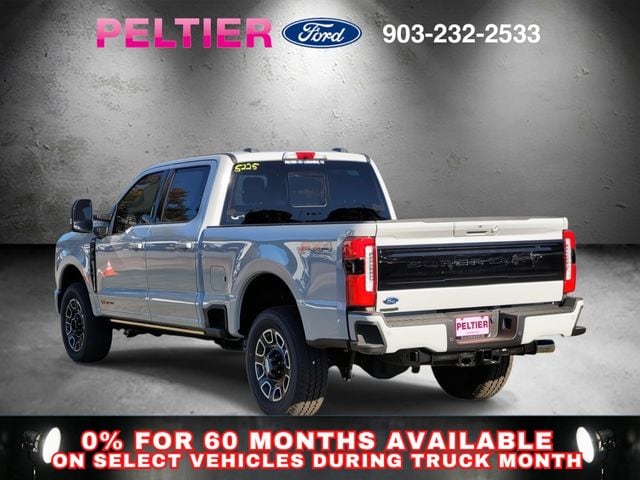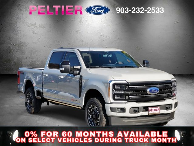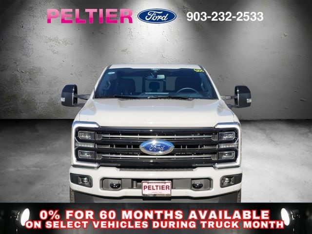 Ford Connectivity Package (1-Year Included), FX4 Off-Road Package (Hill Descent Control, Off-Road Specifically Tuned Shock Absorbers, and Unique FX4 Off-Road Box Decal), GVWR: F-250 >10K Package, High Capacity 11.6" Axle Upgrade Package, Internet access capable: 5G Modem - Ford Connectivity Package, Order Code 703A (Flow-Through Console, Radio: B&O Unleashed Sound System by Bang & Olufsen, SiriusXM with 360L, SYNC 4 with Enhanced Voice Recognition, Unique Platinum Leather 40/Console/40 Seats, and Wheels: 20" Bright Machined and Painted Aluminum), 4WD, 14 Speakers, 4-Wheel Disc Brakes, 410 Amp Dual Alternators, ABS brakes, Adjustable pedals, Air Conditioning, All-Weather Floor Mats, Alloy wheels, AM/FM radio: SiriusXM with 360L, Auto High-beam Headlights, Auto tilt-away steering wheel, Auto-dimming Rear-View mirror, Automatic temperature control, Brake assist, Bumpers: body-color, Compass, Delay-off headlights, Driver door bin, Driver vanity mirror, Dual front impact airbags, Dual front side impact airbags, Electronic Stability Control, Emergency communication system: SYNC 4 911 Assist, Engine Block Heater, Front anti-roll bar, Front Bucket Seats, Front Center Armrest, Front dual zone A/C, Front fog lights, Front License Plate Bracket, Front reading lights, Fully automatic headlights, Garage door transmitter, Heads-Up Display, Heated door mirrors, Heated front seats, Heated rear seats, Heated steering wheel, Illuminated entry, Leather steering wheel, Low tire pressure warning, Memory seat, Navigation system: Connected Navigation, Outside temperature display, Overhead airbag, Overhead console, Panic alarm, Passenger door bin, Passenger vanity mirror, Pedal memory, Power door mirrors, Power driver seat, Power passenger seat, Power steering, Power windows, Rain sensing wipers, Rapid-Heat Supplemental Cab Heater, Rear reading lights, Rear seat center armrest, Rear step bumper, Rear window defroster, Remote keyless entry, SecuriCode Keyless Entry Keypad (driver's Side), Security system, Speed control, Split folding rear seat, Steering wheel memory, Steering wheel mounted A/C controls, Steering wheel mounted audio controls, Tachometer, Telescoping steering wheel, Tilt steering wheel, Traction control, Trip computer, Turn signal indicator mirrors, Upfitter Switches (6), Variably intermittent wipers, Vehicle Safe by Console Vault, and Ventilated front seats.