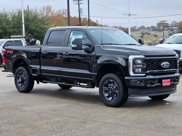 360-Degree Camera Package (360-Degree Camera, BLIS with Cross-Traffic Alert, LED Center High-Mounted Stop Lamp (CHMSL) Camera, and Rear Parking Sensors), Ford Connectivity Package (1-Year Included), FX4 Off-Road Package (Hill Descent Control, Off-Road Specifically Tuned Shock Absorbers, and Unique FX4 Off-Road Box Decal), GVWR: 10,000 Lb Payload Package, GVWR: F-250 >10K Package, Internet access capable: 5G Modem - Ford Connectivity Package, Order Code 600A (17" Argent Painted Steel Wheels, HD Vinyl 40/20/40 Split Bench Seat, Radio: AM/FM Stereo with MP3 Player, and SYNC 4), Snow Plow Prep Package, STX Appearance Package (Body-Color Front Bumper, Body-Color Rear Bumper, Cloth 40/20/40 Split Bench Seat, Color-Coordinated Full Carpet with Floor Mats, LED Fog Lamps, Painted Grille, and Wheels: 18" Ebony Black Painted Aluminum), XL Driver Assist Package, 4WD, 4-Wheel Disc Brakes, 410 Amp Dual Alternators, 6 Speakers, ABS brakes, Air Conditioning, AM/FM radio, Brake assist, Compass, Delay-off headlights, Dual AGM 68 AH Battery, Dual front impact airbags, Dual front side impact airbags, Electronic Stability Control, Emergency communication system: SYNC 4 911 Assist, Exterior Parking Camera Rear, Front anti-roll bar, Front Center Armrest w/Storage, Front License Plate Bracket, Front reading lights, Fully automatic headlights, Heated door mirrors, Illuminated entry, LED Box Lighting, LED Roof Clearance Lights, Low tire pressure warning, Outside temperature display, Overhead airbag, Overhead console, Panic alarm, Passenger vanity mirror, Platform Running Boards, Power door mirrors, Power steering, Power windows, Power-Sliding Rear-Window with Defrost, Privacy Glass, Pro Power Onboard - 400W, Rear reading lights, Rear step bumper, Remote keyless entry, Security system, Speed control, Split folding rear seat, Steering wheel mounted audio controls, Tachometer, Telescoping steering wheel, Tilt steering wheel, Traction control, Trailer Brake Controller, Trip computer, Turn signal indicator mirrors, Upfitter Switches (6), Variably intermittent wipers, and Wheels: 20" Dark Carbonized Gray Painted Aluminum.