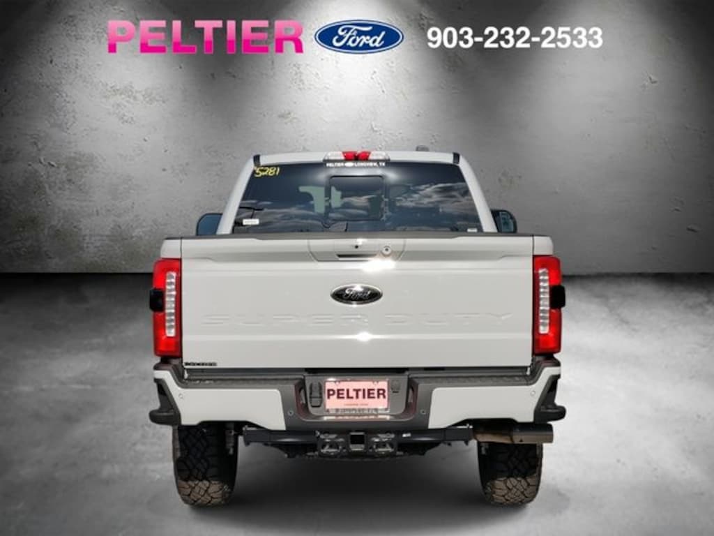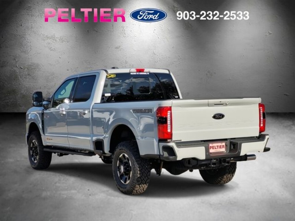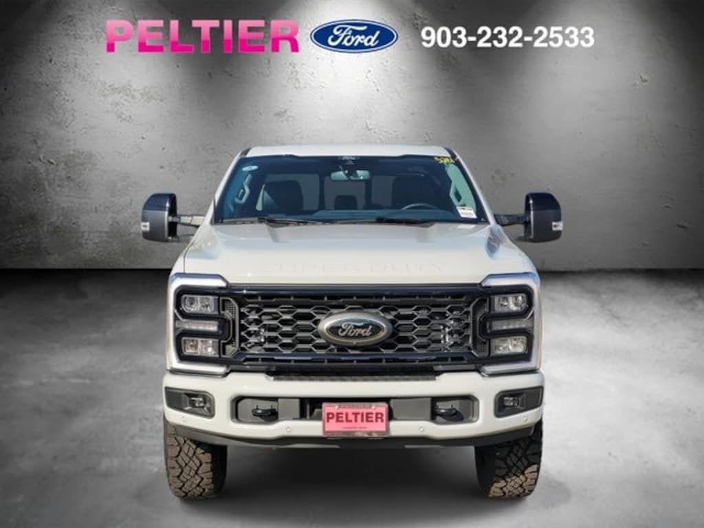 Black Appearance Package (6" Ebony Black Angular Running Boards, Black Painted Front Grille Surround, Body Color Front & Rear Bumpers, Ebony Black Painted Mirror Caps, Rear Wheel Well Liners (Pre-Installed), Tough Bed Spray-In Bedliner, and Wheels: 20" Ebony Black High Gloss), F-250 >10K GVWR Package, Ford Connectivity Package (1-Year Included), High Capacity 11.6" Axle Upgrade Package, Internet access capable: 5G Modem - Ford Connectivity Package, Lariat Premium Package (Lane Departure Warning System, Power-Sliding Rear-Window w/Defrost, Privacy Glass, Pro Trailer Backup Assist, and Pro Trailer Hitch Assist), Lariat Ultimate Package (4-Way Adjustable Headrests, Head-Up Display, Power-Deployable Running Boards, Radio: B&O Unleashed Sound System by Bang & Olufsen, SiriusXM w/360L, SYNC 4 w/Enhanced Voice Recognition, and Tailgate Step & Handle), Order Code 608A, 4WD, 4-Wheel Disc Brakes, 8 Speakers, ABS brakes, Adaptive Cruise Control w/Stop-and-Go, Adjustable pedals, Air Conditioning, All-Weather Floor Mats, Alloy wheels, AM/FM radio: SiriusXM with 360L, Auto High-beam Headlights, Auto-dimming Rear-View mirror, Automatic High Beam, Automatic temperature control, BLIS w/Cross-Traffic Alert, Brake assist, Bumpers: chrome, Compass, Delay-off headlights, Driver door bin, Driver vanity mirror, Dual AGM 68 AH Battery, Dual front impact airbags, Dual front side impact airbags, Electronic Stability Control, Emergency communication system: SYNC 4 911 Assist, Engine Block Heater, Flow-Through Console, Front & Rear Parking Sensors, Front ActiveX Trimmed 40/Console/40 Seats, Front anti-roll bar, Front Bucket Seats, Front Center Armrest, Front dual zone A/C, Front fog lights, Front License Plate Bracket, Front reading lights, Fully automatic headlights, Garage door transmitter, Heated door mirrors, Heated front seats, Heated rear seats, Heated steering wheel, Illuminated entry, Lane-Keeping System, Low tire pressure warning, Memory seat, Navigation system: Connected Navigation, Outside temperature display, Overhead airbag, Overhead console, Panic alarm, Passenger door bin, Passenger vanity mirror, Pedal memory, Post-Collision Braking, Power door mirrors, Power driver seat, Power passenger seat, Power steering, Power windows, Pre-Collision Assist, Pro Power Onboard - 2kW, Radio: B&O Sound System by Bang & Olufsen, Rain sensing wipers, Rear Parking Sensors, Rear reading lights, Rear seat center armrest, Rear step bumper, Rear window defroster, Remote keyless entry, Security system, Speed control, Split folding rear seat, Steering wheel mounted audio controls, Tachometer, Telescoping steering wheel, Tilt steering wheel, Traction control, Trip computer, Turn signal indicator mirrors, Twin Panel Power Moonroof, Upfitter Switches (6), Variably intermittent wipers, Ventilated front seats, and Wheels: 18" Bright Machined & Carbonized Gray Alum.