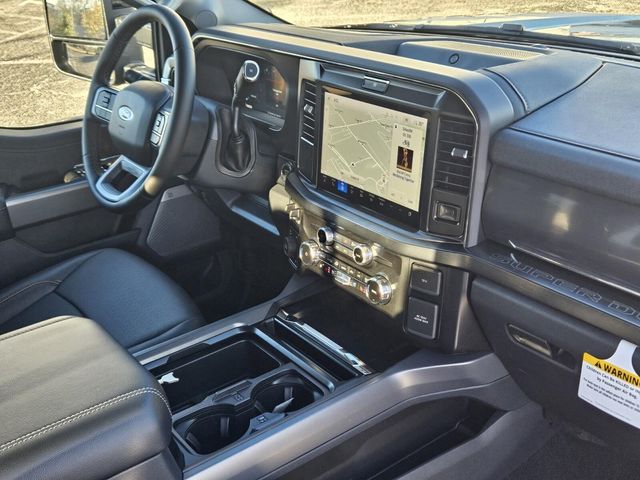 Black Appearance Package (6" Ebony Black Angular Running Boards, Black Painted Front Grille Surround, Body Color Front and Rear Bumpers, and Ebony Black Painted Mirror Caps), Ford Connectivity Package (1-Year Included), GVWR: F-250 >10K Package, High Capacity 11.6" Axle Upgrade Package, Internet access capable: 5G Modem - Ford Connectivity Package, Order Code 608A (Flow-Through Console, Front ActiveX Trimmed 40/Console/40 Seats, Radio: B&O Sound System by Bang and Olufsen, SiriusXM with 360L, SYNC 4 with Enhanced Voice Recognition, and Wheels: 18" Bright Machined and Carbonized Gray Aluminum), 4WD, 4-Wheel Disc Brakes, 8 Speakers, ABS brakes, Adjustable pedals, Air Conditioning, Alloy wheels, AM/FM radio: SiriusXM with 360L, Auto High-beam Headlights, Auto-dimming Rear-View mirror, Automatic temperature control, BLIS with Cross-Traffic Alert, Brake assist, Bumpers: chrome, Compass, Delay-off headlights, Driver door bin, Driver vanity mirror, Dual AGM 68 AH Battery, Dual front impact airbags, Dual front side impact airbags, Electronic Stability Control, Emergency communication system: SYNC 4 911 Assist, Engine Block Heater, Front anti-roll bar, Front Bucket Seats, Front Center Armrest, Front dual zone A/C, Front fog lights, Front License Plate Bracket, Front reading lights, Fully automatic headlights, Garage door transmitter, Heated door mirrors, Heated front seats, Heated rear seats, Heated steering wheel, Illuminated entry, LED Roof Clearance Lights, Low tire pressure warning, Memory seat, Navigation system: Connected Navigation, Outside temperature display, Overhead airbag, Overhead console, Panic alarm, Passenger door bin, Passenger vanity mirror, Pedal memory, Power door mirrors, Power driver seat, Power passenger seat, Power steering, Power windows, Power-Sliding Rear-Window with Defrost, Privacy Glass, Rain sensing wipers, Rear Parking Sensors, Rear reading lights, Rear seat center armrest, Rear step bumper, Rear window defroster, Remote keyless entry, SecuriCode Keyless Entry Keypad (driver's Side), Security system, Speed control, Split folding rear seat, Steering wheel mounted audio controls, Tachometer, Tailgate Step and Handle, Telescoping steering wheel, Tilt steering wheel, Traction control, Trip computer, Turn signal indicator mirrors, Upfitter Switches (6), Variably intermittent wipers, and Ventilated front seats.