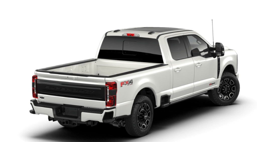 F-250 >10K GVWR Package, Ford Connectivity Package (1-Year Included), FX4 Off-Road Package (Hill Descent Control, Off-Road Specifically Tuned Shock Absorbers, and Unique FX4 Off-Road Box Decal), High Capacity 11.6" Axle Upgrade Package, Internet access capable: 5G Modem - Ford Connectivity Package, Order Code 703A, 4WD, 14 Speakers, 4-Wheel Disc Brakes, 410 Amp Dual Alternators, ABS brakes, Adjustable pedals, Air Conditioning, Alloy wheels, AM/FM radio: SiriusXM with 360L, Auto High-beam Headlights, Auto tilt-away steering wheel, Auto-dimming Rear-View mirror, Automatic temperature control, Brake assist, Bumpers: body-color, Compass, Delay-off headlights, Driver door bin, Driver vanity mirror, Dual front impact airbags, Dual front side impact airbags, Electronic Stability Control, Emergency communication system: SYNC 4 911 Assist, Engine Block Heater, Flow-Through Console, Front anti-roll bar, Front Bucket Seats, Front Center Armrest, Front dual zone A/C, Front fog lights, Front License Plate Bracket, Front reading lights, Fully automatic headlights, Garage door transmitter, Heads-Up Display, Heated door mirrors, Heated front seats, Heated rear seats, Heated steering wheel, Illuminated entry, Leather steering wheel, Low tire pressure warning, Memory seat, Navigation system: Connected Navigation, Outside temperature display, Overhead airbag, Overhead console, Panic alarm, Passenger door bin, Passenger vanity mirror, Pedal memory, Power door mirrors, Power driver seat, Power passenger seat, Power steering, Power windows, Pro Power Onboard - 2kW, Radio: B&O Unleashed Sound System by Bang & Olufsen, Rain sensing wipers, Rear reading lights, Rear seat center armrest, Rear step bumper, Rear window defroster, Remote keyless entry, SecuriCode Keyless Entry Keypad (Driver's Side), Security system, SiriusXM w/360L, Speed control, Split folding rear seat, Steering wheel memory, Steering wheel mounted A/C controls, Steering wheel mounted audio controls, SYNC 4 w/Enhanced Voice Recognition, Tachometer, Telescoping steering wheel, Tilt steering wheel, Traction control, Trip computer, Turn signal indicator mirrors, Twin Panel Power Moonroof, Unique Platinum Leather 40/Console/40 Seats, Upfitter Switches (6), Variably intermittent wipers, Ventilated front seats, and Wheels: 20" Bright Machined & Painted Aluminum.